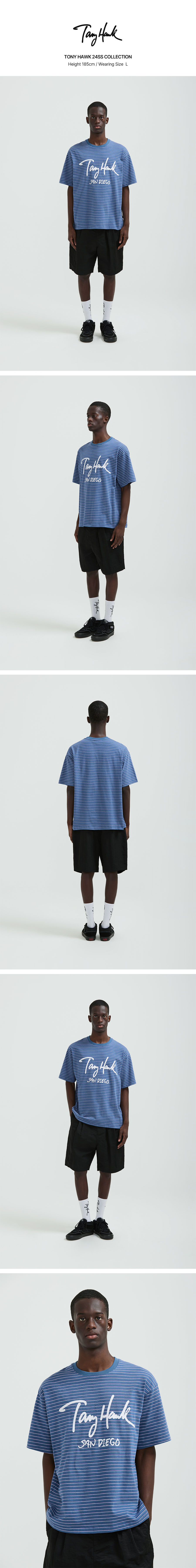 토니호크 에센셜 스트라이프 티셔츠 블루