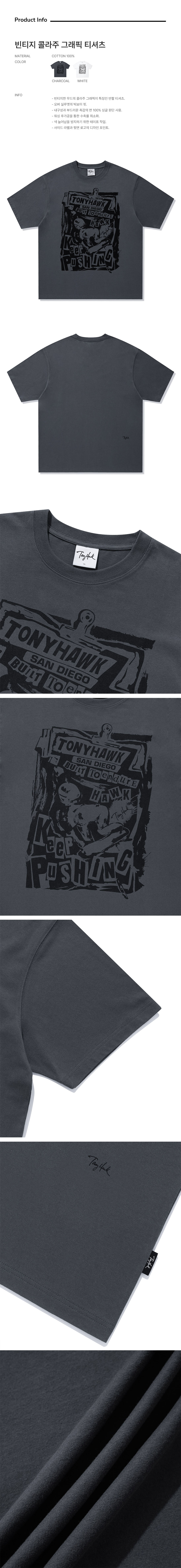 토니호크 빈티지 콜라주 그래픽 티셔츠 차콜