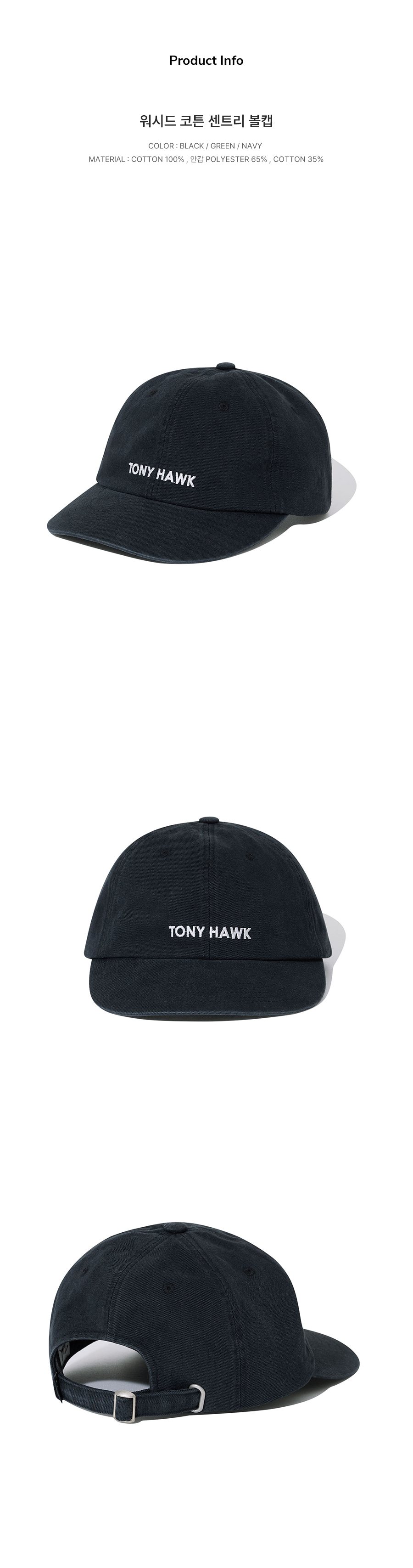 토니호크 워시드 코튼 센트리 볼캡 블랙