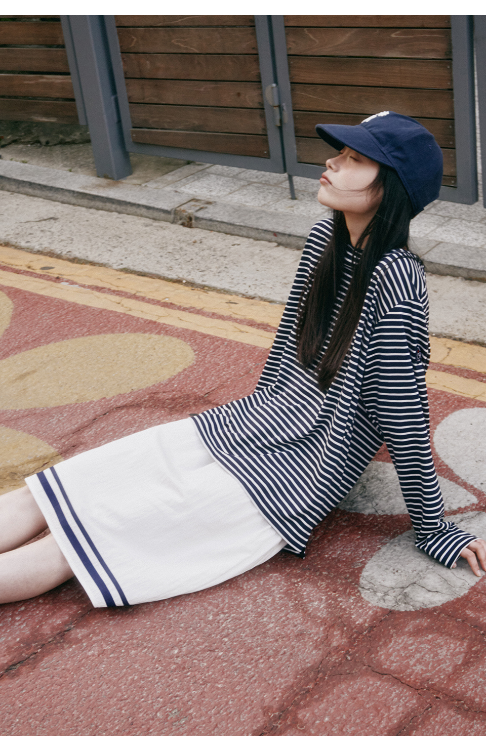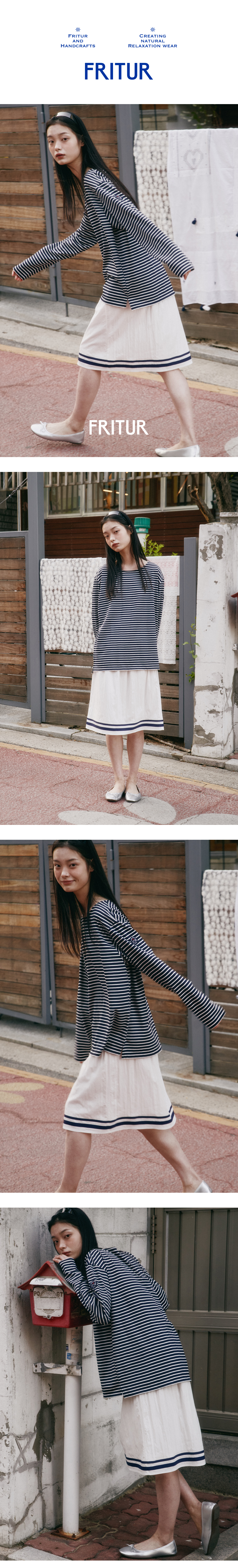 Fritur Marine Stripe Mid-Skirt White_F252SK05