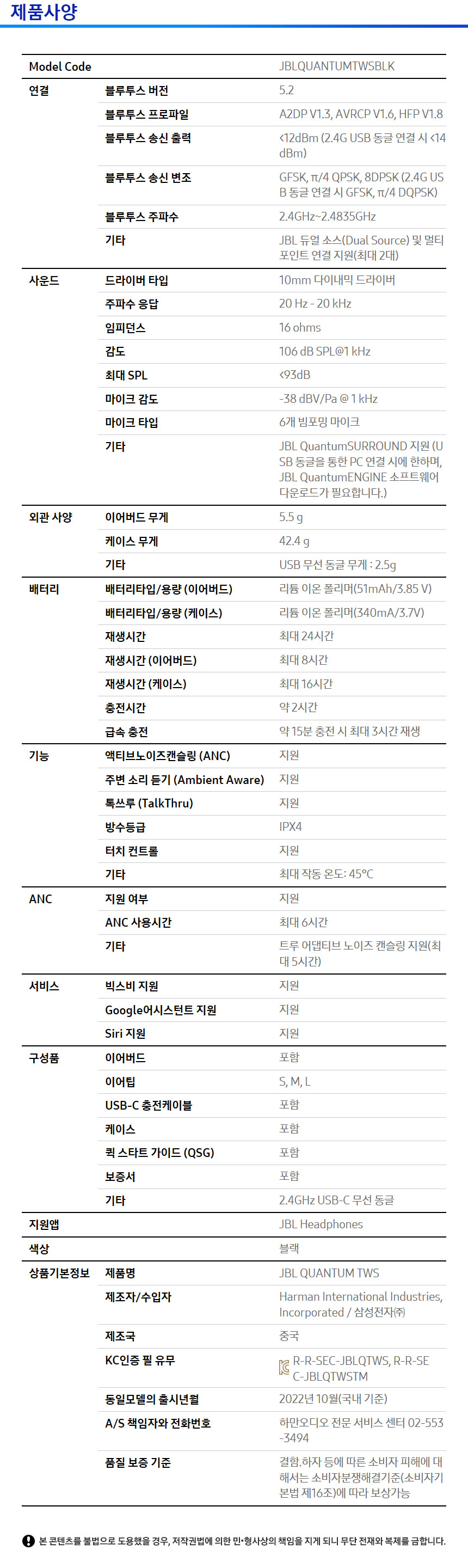 제이비엘 QUANTUM TWS 게이밍 무선 이어폰 블랙