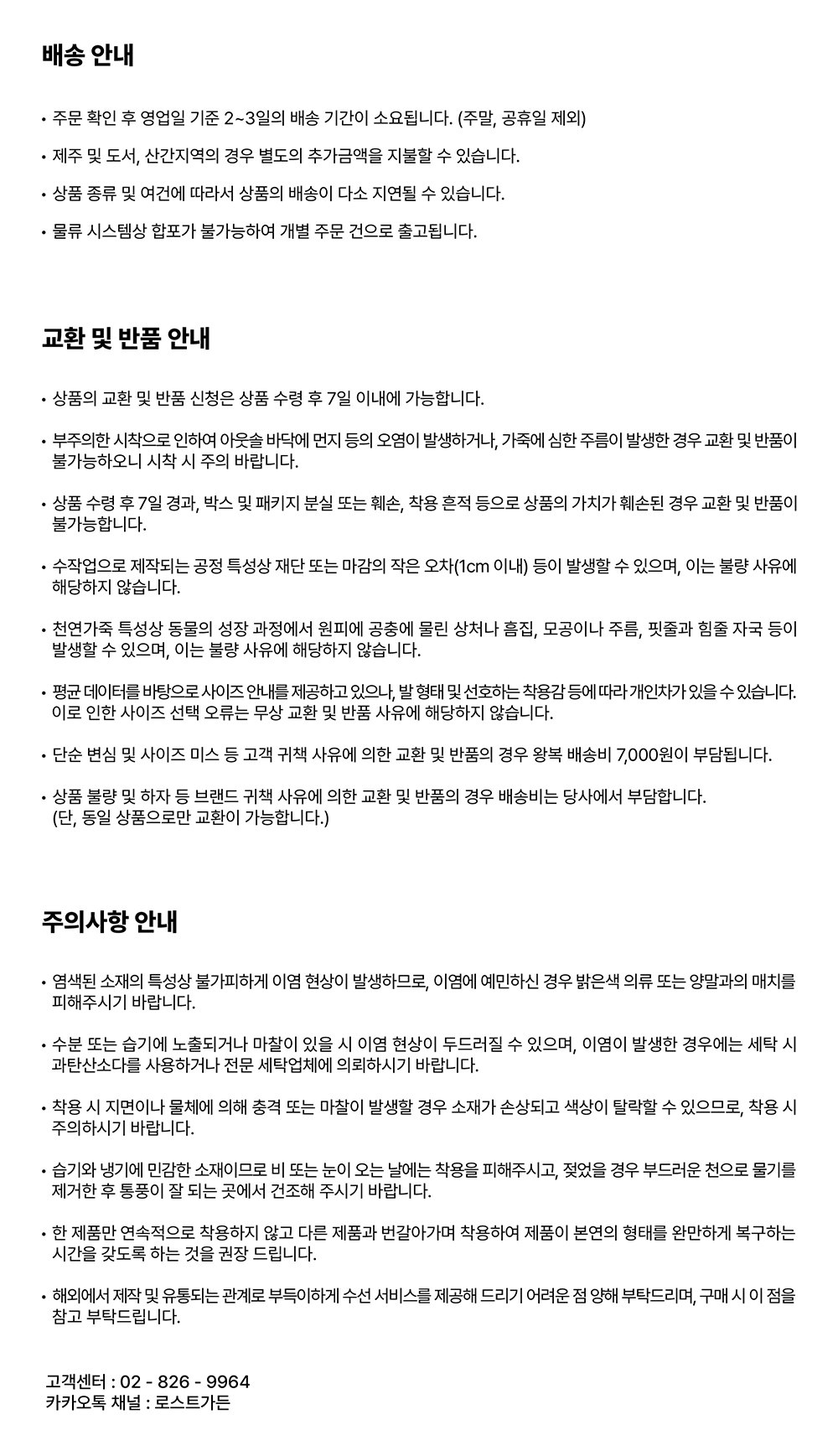교환 및 반품 안내