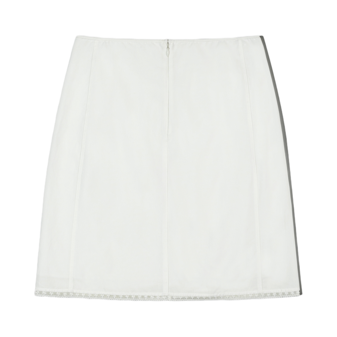 (W) 로우클래식 레이스 미디 스커트 화이트