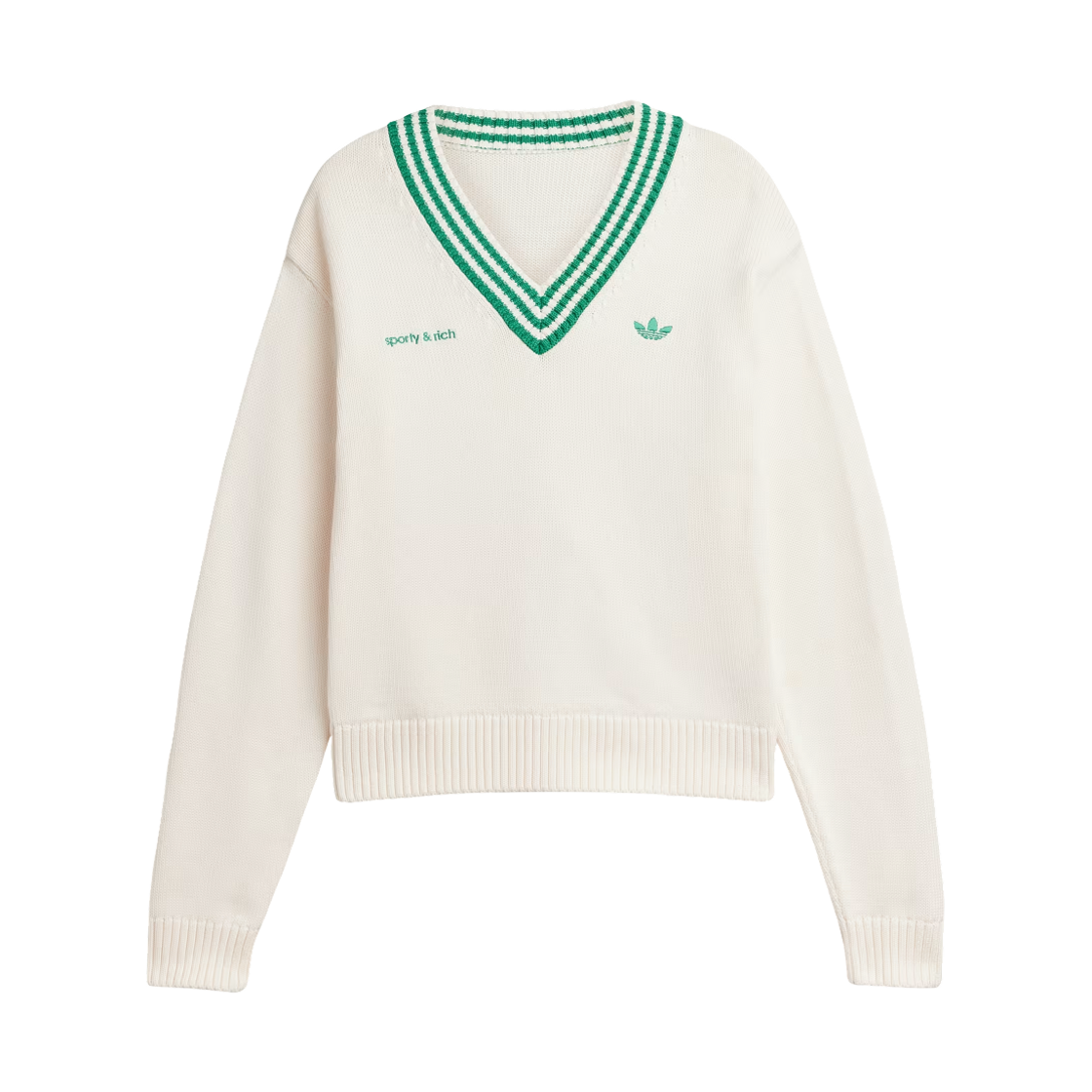 (W) Adidas x Sporty & Rich V-Neck Sweater Off White Night Navy - KR Sizing
