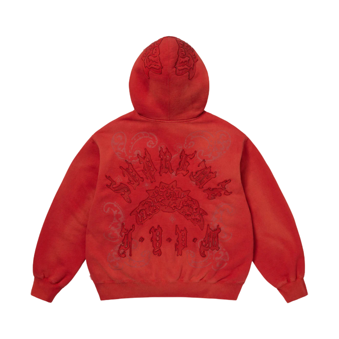Supreme Leather Applique Zip Up Hooded Sweatshirt Burnt Red - 25SS
