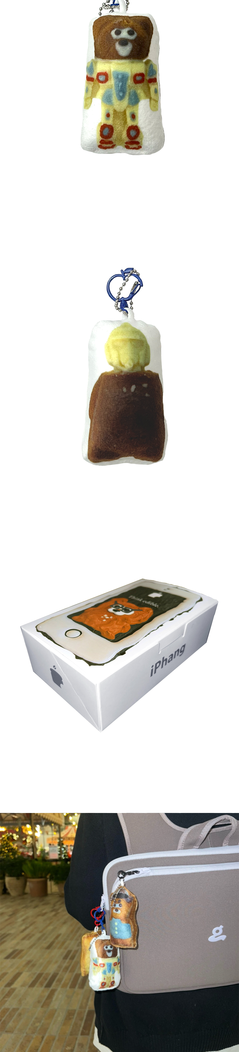 ■ Product Detail 브레드읍읍의 시그니처 디저트 ‘곰자 휘낭시에’가 키링으로 다시 태어났습니다. 실제 휘낭시에를 아껴 먹던 읍읍인들이라면 이젠 ‘곰자’를 영구 보존할 수 있는 기회! 곰팡이 ZERO / 부식 ZERO / 일상에 웃음은 플러스. 전설의 건담과 곰자의 얼굴을 더한 리버서블 양면 디자인, 앞뒤 두 개의 얼굴로 두 번 열받기 가능한 유쾌한 구성입니다. ■ Material & Size FABRIC: 극세사 패브릭, 스웨이드 디테일 SIZE: 10cm(H) x 5cm(W) DETAIL: 사과 고리 장착 / 리버서블 구조 ■ POINT 휘낭시에 실루엣 그대로 구현한 봉제 키링 곰자와 건담이 만나 탄생한 기동전사 패러디 부드러운 촉감과 키치한 감성 카메라, 가방, 파우치 어디든 장착 OK ■ Made in Korea 브랜드: OIBOIB 원산지: 대한민국 자체 제작 상품