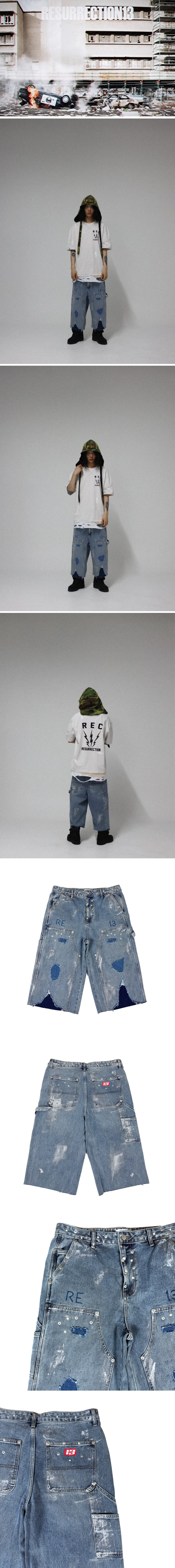 레저렉션13 페인티드 디테일 더블니 데님 쇼츠 데님