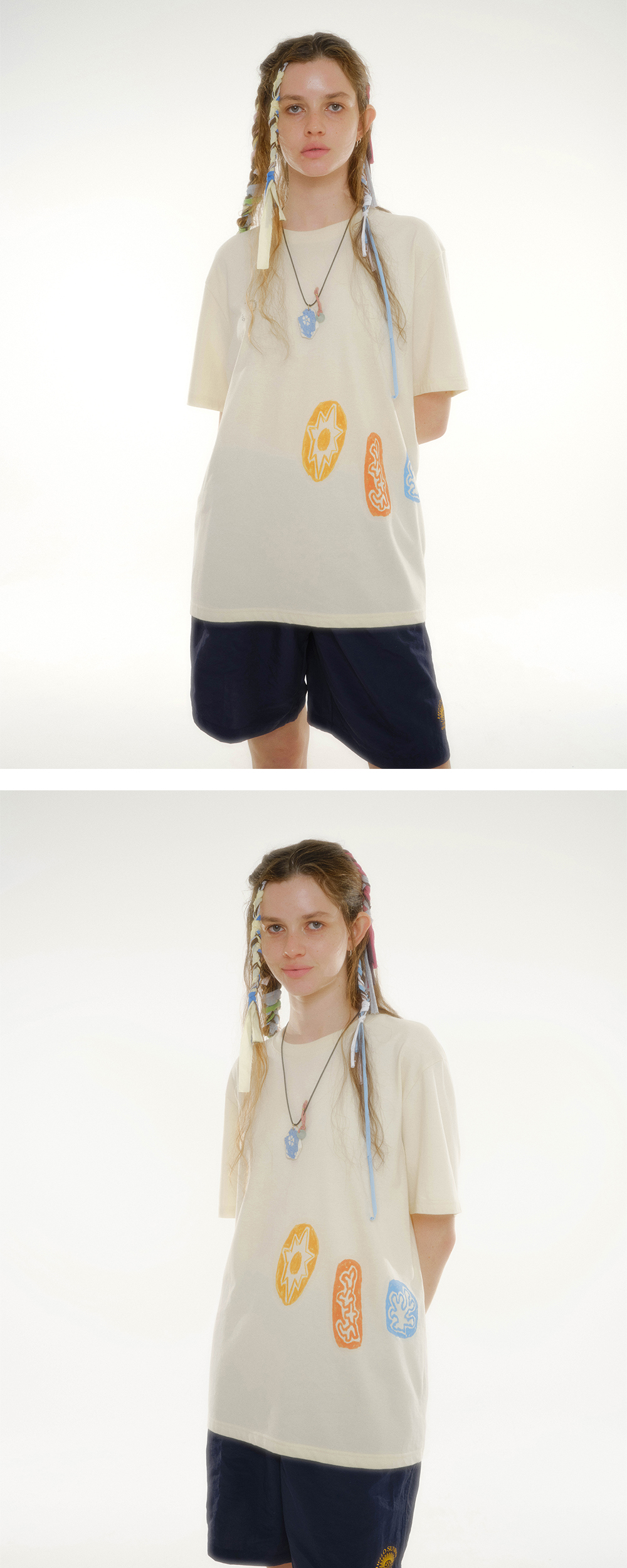 Hello Sunrise와 ETC Blanck 협업 그래픽으로 완성된 티셔츠 입니다. - Hello Sunrise 스탠다드 핏의 남녀 공용의 반팔 티셔츠 - 전면, 후면 하단 Ocean Harmony 그래픽 디지털 프린팅 - 후면 헬로선라이즈 이티씨 블랭크 협업 심볼 나염 * Model : 177cm / Size : Medium * 측정 기준에 따라 1-2cm의 차이가 있을 수 있습니다. * Cotton 100% Made in Korea