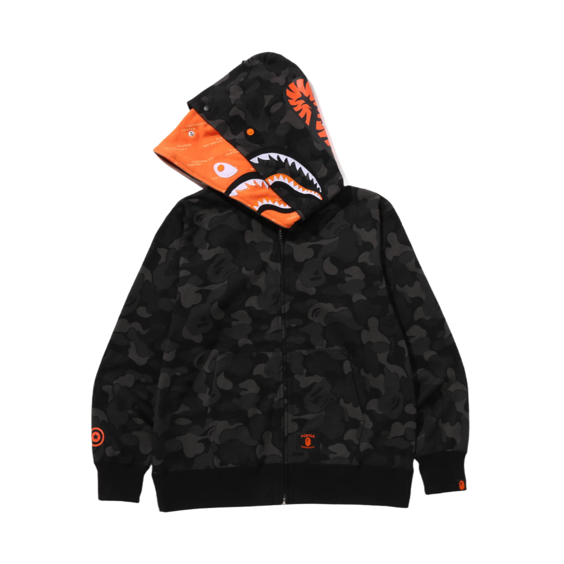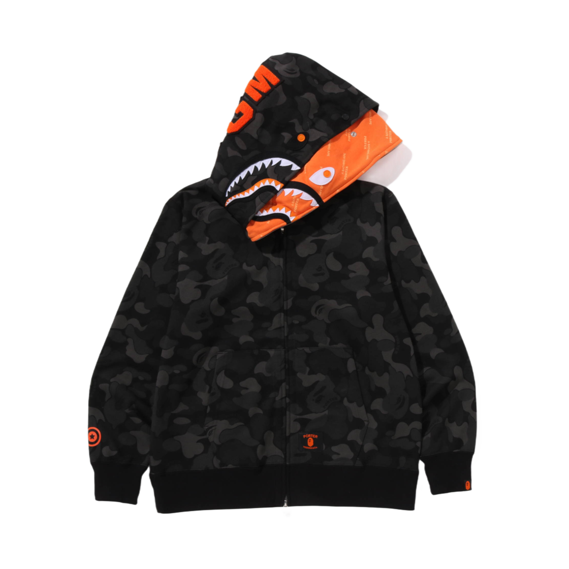 베이프 x 포터 샤크 풀 집 더블 후드 블랙