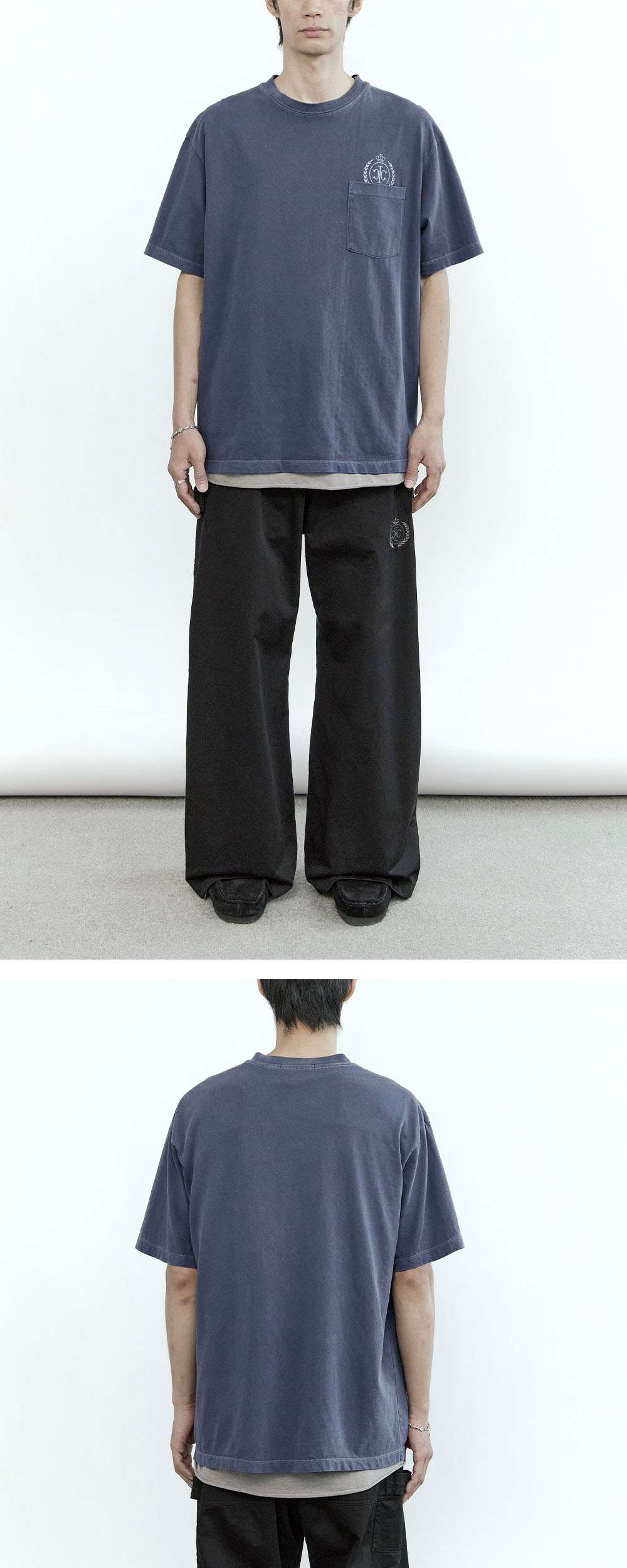 human pocket emblem t-shirt - 부드러운 촉감의 코튼 티셔츠 - 전면 포켓 및 엠블럼 프린팅 - 넉넉하되 루즈하게 떨어지는 실루엣 - 가먼트 다잉 및 어깨 체인스티칭