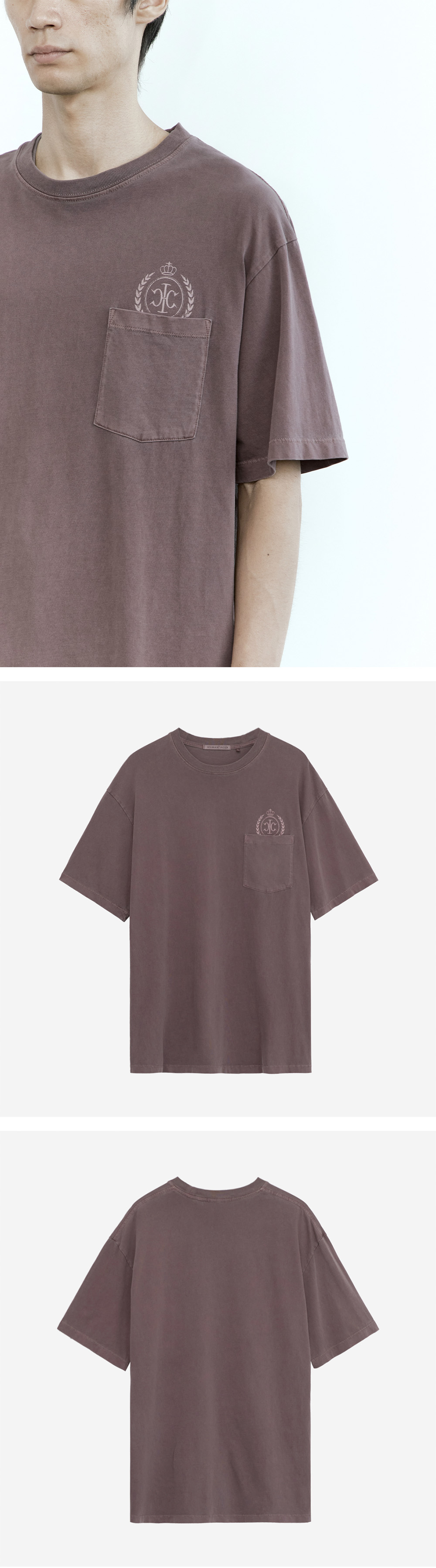 human pocket emblem t-shirt - 부드러운 촉감의 코튼 티셔츠 - 전면 포켓 및 엠블럼 프린팅 - 넉넉하되 루즈하게 떨어지는 실루엣 - 가먼트 다잉 및 어깨 체인스티칭