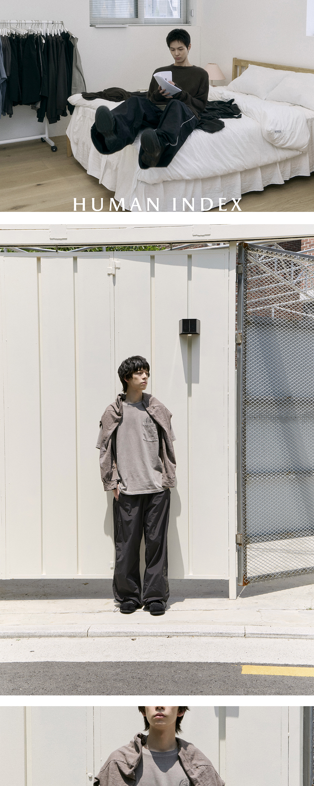 index classic lettering track pants - ink navy, charcoal brown * 내추럴한 질감의 워시드 나일론 트랙 팬츠 * 자연스럽게 떨어지는 루즈한 실루엣 * 밴딩 웨이스트 & 밑단 스트링 * 빈티지 스포츠 팬츠 요소를 사용한 레터링 프린트 * 가먼트 다이드
