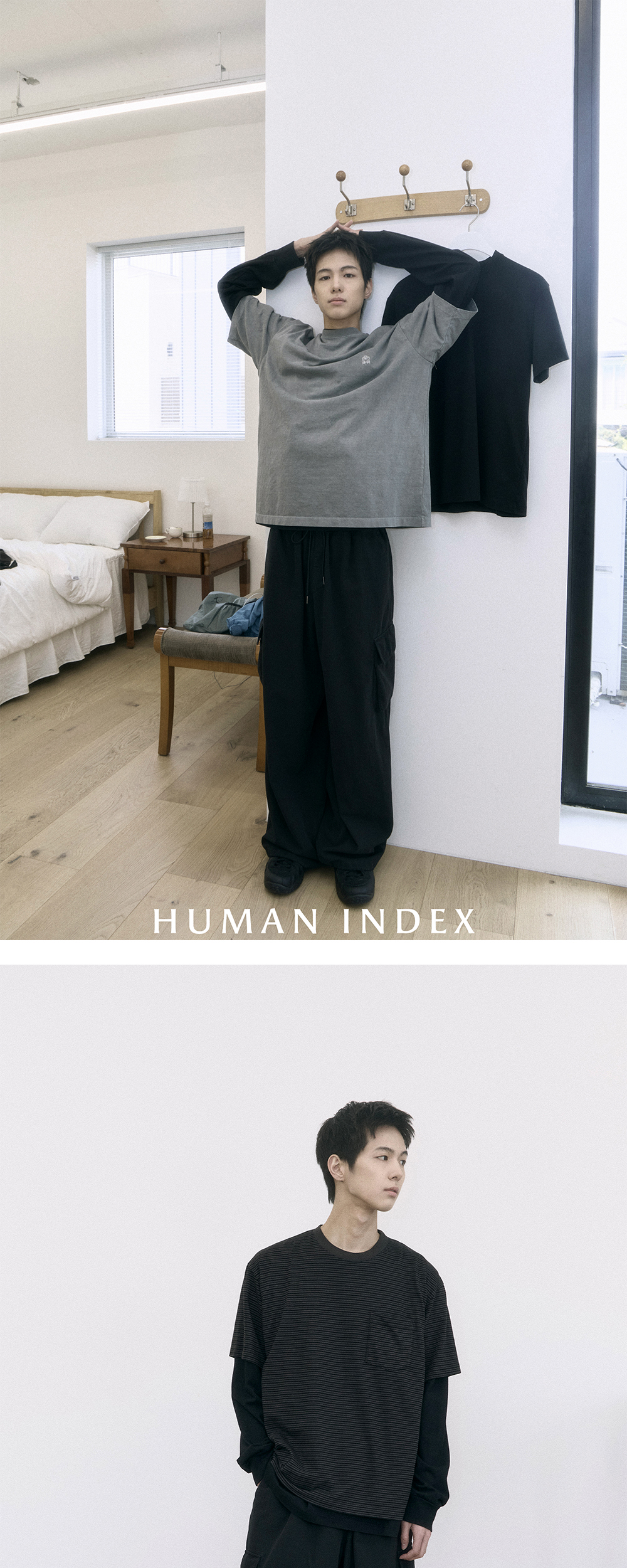 폴리테루 휴먼인덱스 휴먼 스트라이프 포켓 1/2 티셔츠 차콜
