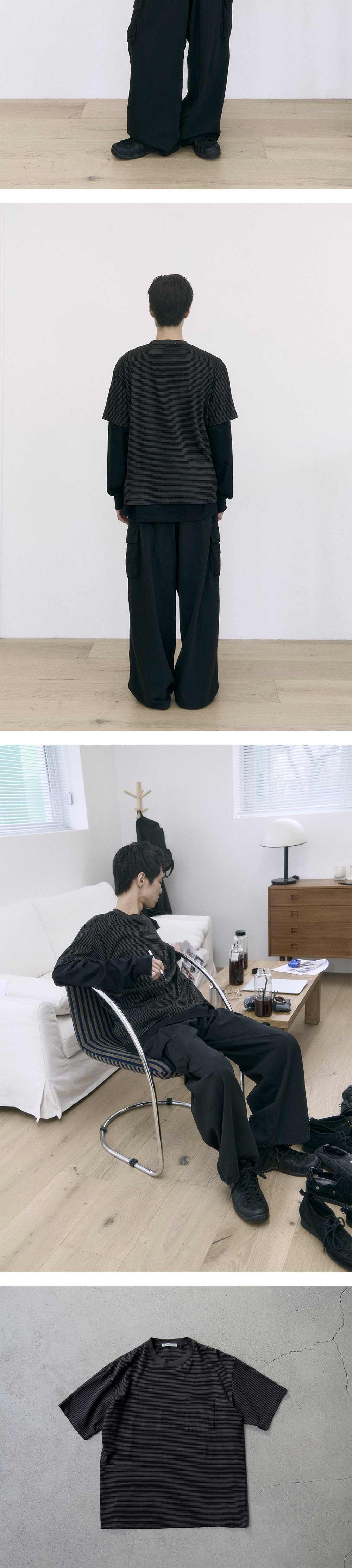 human striped pocket 1/2 t-shirt - 부드러운 촉감의 코튼 티셔츠 - 2가지 두께의 얇은 스트라이프 패턴 - 넉넉하되 루즈하게 떨어지는 실루엣 - 가먼트 워싱 및 어깨 체인스티칭 *모델: 180 초반 / 마른 체형, 3사이즈 착용 *가먼트 다잉 제품 특성상 생산 차수마다 색감이 조금씩 변경 될 수 있습니다. *다만 금번 차수 경우, 전 차수와의 색감차가 극히 미약해 별도 차이점은 코멘트 없이 발매 됩니다. 본 제품은 직전 차수와 유사한 실측 및 착용감으로 제작되었습니다. 기존 동일 제품을 착용해보신 고객의 경우, 동일 사이즈 선택 시 적합한 핏으로 착용이 가능합니다. 정확한 상세 사이즈의 경우, 실측표 확인 부탁드립니다.