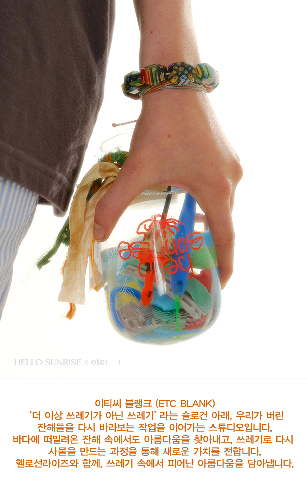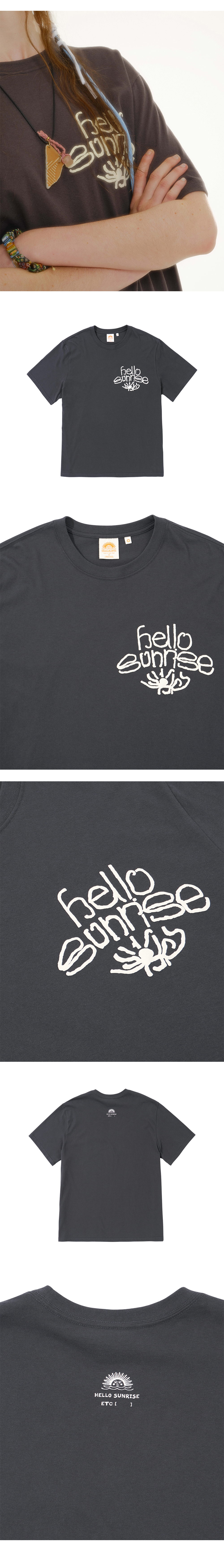 Hello Sunrise와 ETC Blanck 협업 그래픽으로 완성된 티셔츠 입니다. - Hello Sunrise 스탠다드 핏의 남녀 공용의 반팔 티셔츠 - 전면 Sunrise Dancing 그래픽 프린팅 - 후면 헬로선라이즈 이티씨 블랭크 협업 심볼 나염 * Model : 177cm / Size : Medium * 측정 기준에 따라 1-2cm의 차이가 있을 수 있습니다. * Cotton 100% Made in Korea
