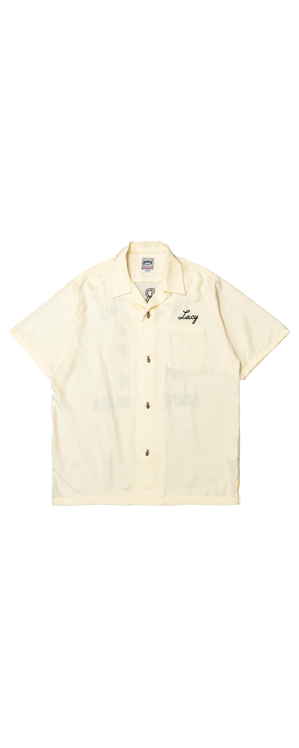 Houston Japan 41224 Bowling Shirt (Tiger Bowl) - Cream Houston Japan의 대표적인 볼링 셔츠입니다. 레이온 소재로 더운 계절에 맞는 시원한 촉감입니다. 자연스러운 핏감과 전면부 볼링핀 버튼이 특징입니다. 자수 디자인은 수베니어 재킷 무늬 느낌의 코믹한 호랑이 디자인입니다. * Rayon 100% * 빛에 의한 제품의 색감 차이가 존재 할 수 있습니다. * Made in China