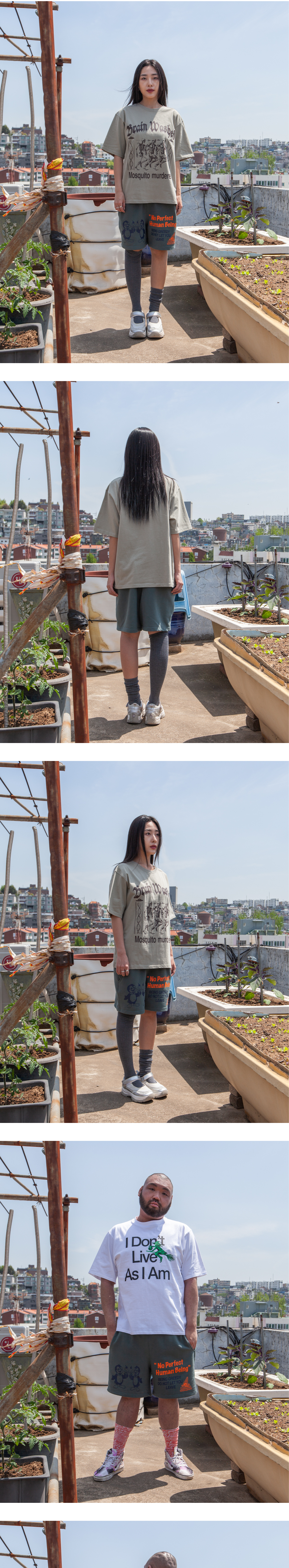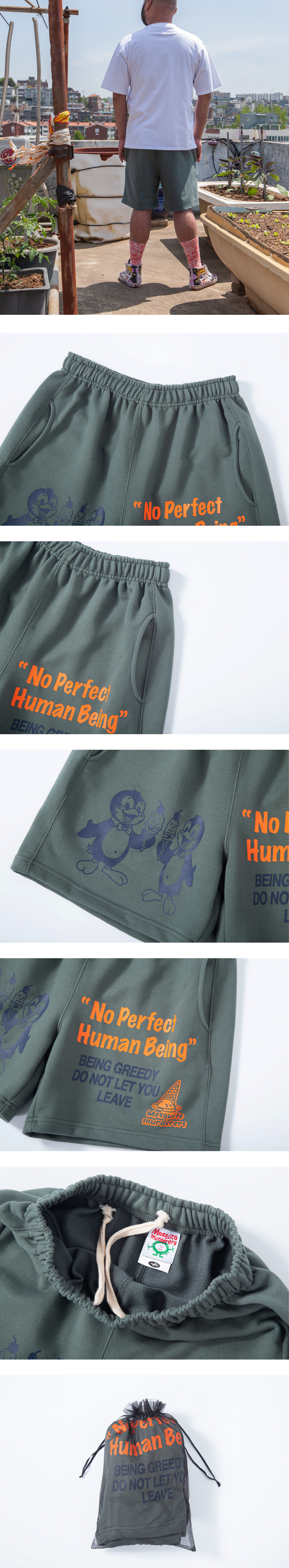 162cm (5’4”) / 51kg (112lb) WEARS SIZE 1<br>181cm (5’11”) / 90kg (198lb) WEARS SIZE 2<br><br>- Cotton 50% Polyester 50%<br>- 허리 내부 스트링 <br>- 전체 갈라삼봉 봉제법으로 내구성이 우수하며 완성도 높은 실루엣 <br>- 덤블워싱, 텐타 가공을 거쳐 오랜시간 착용 및 세탁시에도 옷의 변형을 최소화 <br>- 벗겨지거나 바래지 않는 선명한 프린팅<br><br>Mosquito murderers의 모든 의류는 한땀 한땀 사람의 손으로 탄생됩니다. <br>세탁시 케어라벨을 확인해 주시고, 프린팅의 손상을 최소화 하기 위해 옷을 뒤집어 세탁하는 것을 권장합니다.