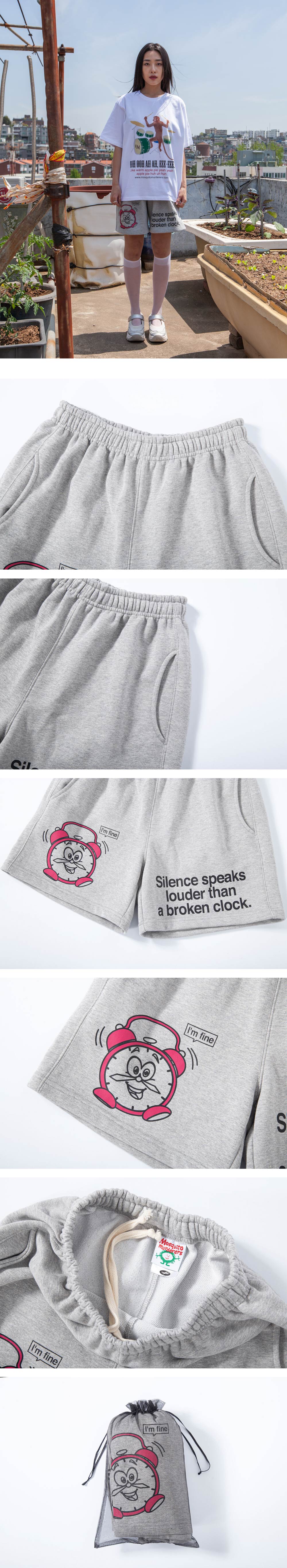 모스키토 머더러스 사일런스 스픽 라우더 댄 어 브로큰 클락 쇼츠 그레이