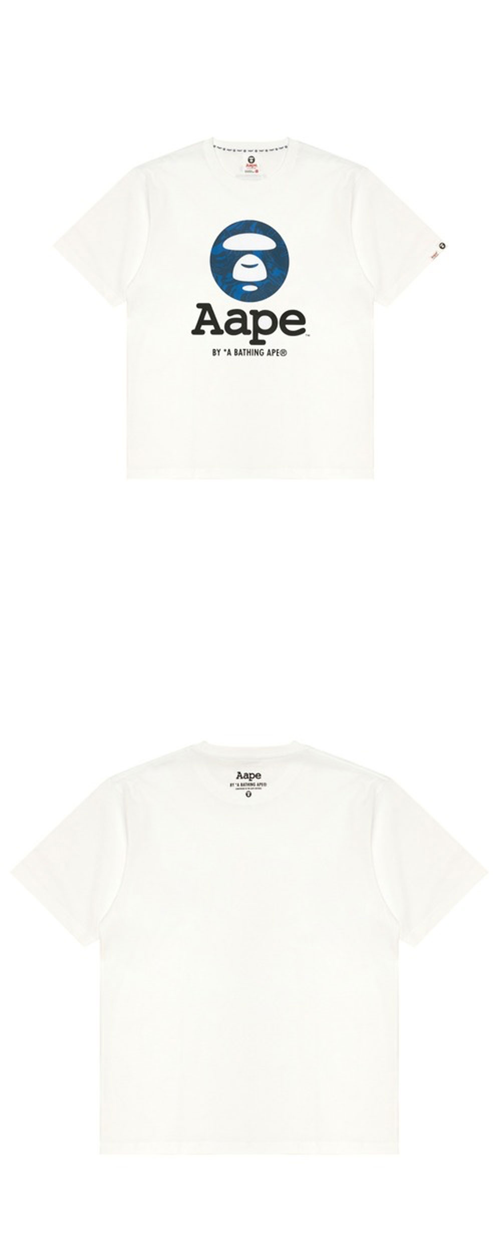 유니크한 블루 카모 프린팅이 인상적인 에이프의 베이직 티 화이트입니다. - 에이프의 문페이스 로고에 프린트된 카모플라주 패턴 - 레귤러한 실루엣 - 데님, 카고 팬츠 등 다양한 하의와 매치하기 좋은 심플한 디자인