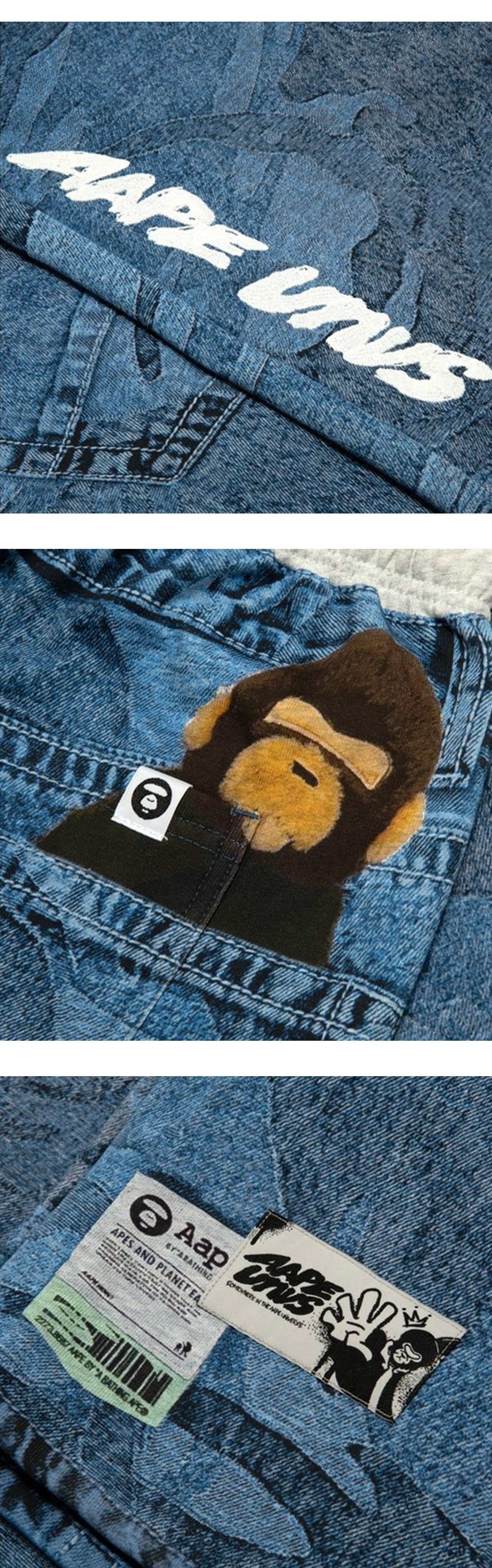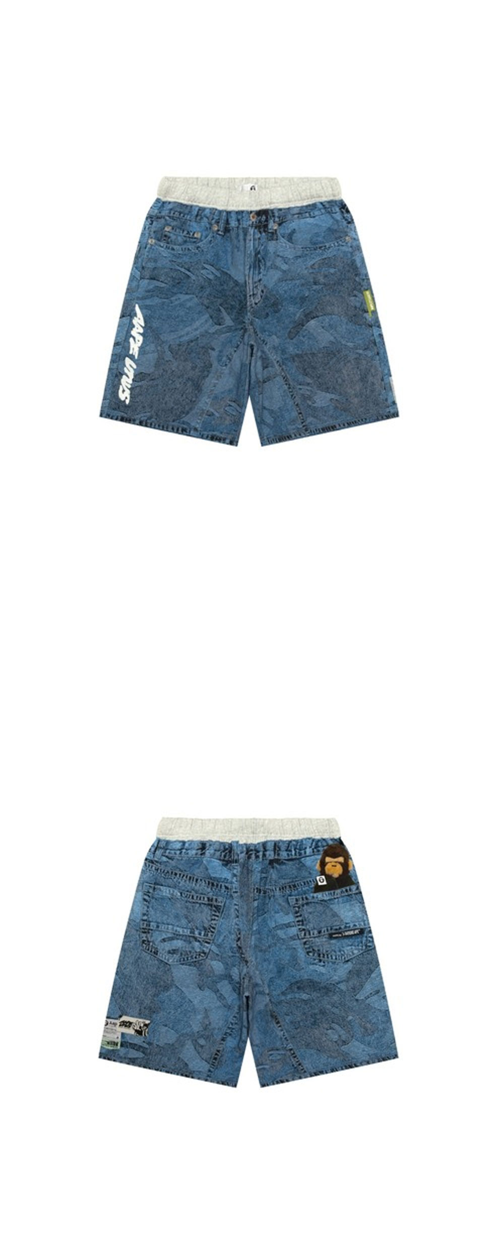 자연스러운 빈티지한 무드가 매력적인 에이프의 에이퍼 스웨트 쇼츠 블루입니다. - 데님과 스웻 소재가 믹스되어 편안하면서도 스타일리쉬한 디자인 - 백 포켓 쪽 AAPER - 캐주얼한 스타일링에 어울리는 루즈한 핏
