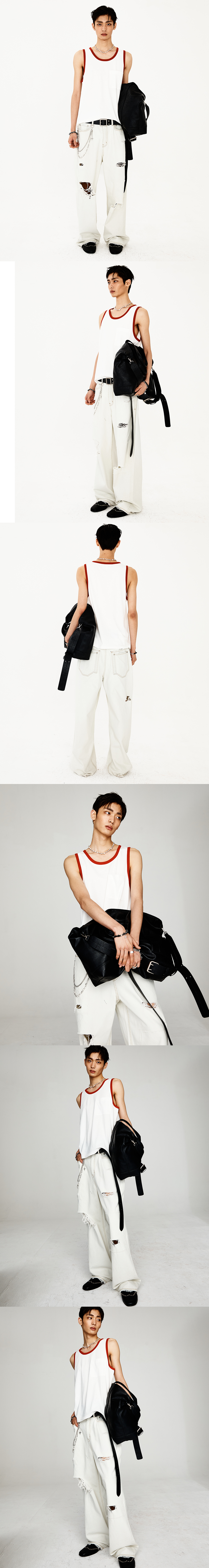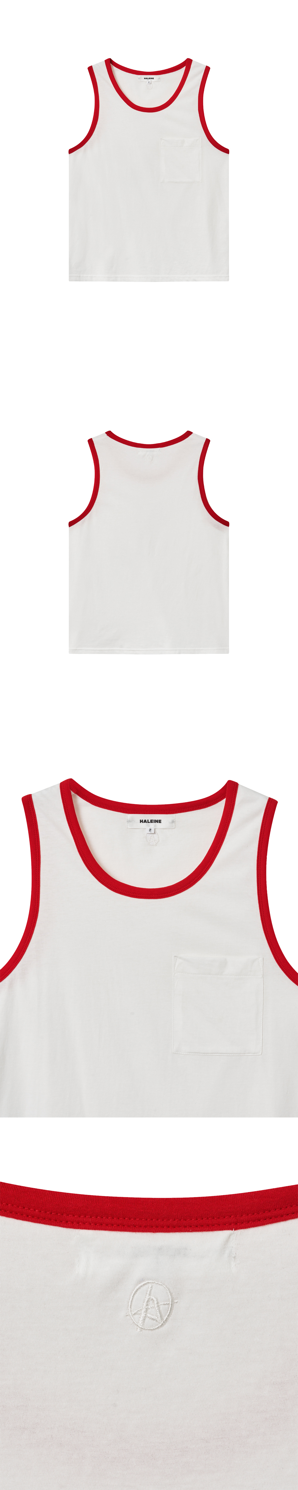 30수 싱글 저지 원단으로 제작된 슬리브리스 탑입니다. 넥라인과 암홀에는 배색 링거 디테일이 더해져 클래식하면서도 캐주얼한 무드를 연출합니다. 가슴 포켓에는 동일 원단이 사용되어 절제된 디자인 안에 균형 잡힌 포인트를 더했습니다. 단독 착용은 물론, 이너 레이어드 아이템으로도 활용하기 좋습니다. - DETAIL - 스쿱넥 뒷면 로고 자수 넥라인과 암홀에 배색 링거 디테일 동일 원단으로 제작된 가슴 포켓 -model- 186cm / 가슴둘레 86cm / 허리둘레 71cm / 엉덩이둘레 91cm - 1사이즈 착용
