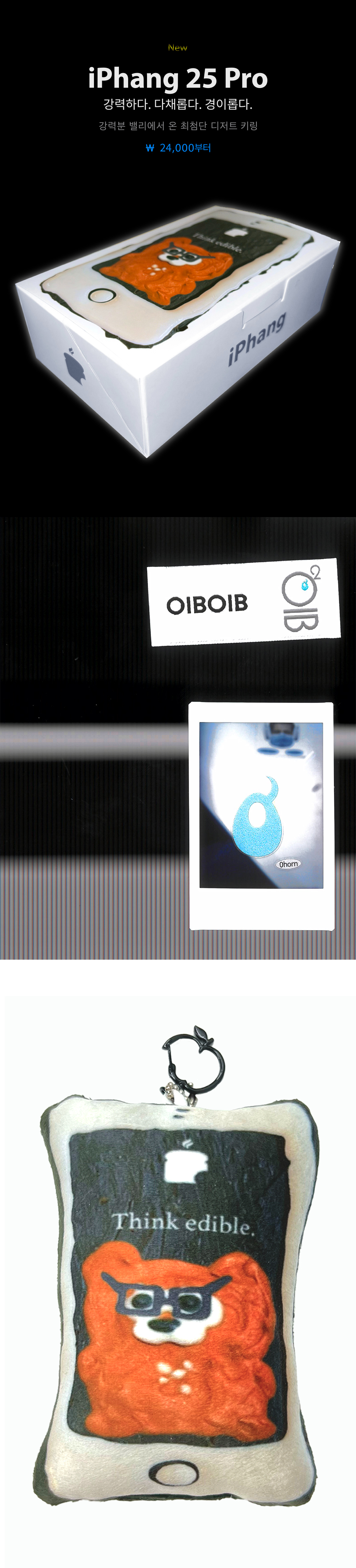 ■ Product Detail 브레드읍읍의 시그니처 디저트 ‘iPhang 25 Pro Space EarlGrey’가 키링으로 다시 태어났습니다. 디저트를 아껴 먹던 읍읍인들이라면 이젠 ‘iPhang 프로'를 영구 보존할 수 있는 기회! 1. 14cm 항공우주 등급 비스코티 디자인 2. 견고한 최신 세대 Suede Shield 전면, 동작 버튼 3. 대폭 증가한 칼로리 사용 시간으로 최대 22시간 에너지 재생 4. iPhang 25 Pro로 깊이감 넘치는 공간 사진과 비디오를 생생하게 ■ Material & Size FABRIC: 극세사 패브릭, 스웨이드 디테일 SIZE: 14cm(H) x 10cm(W) DETAIL: 사과 고리 장착 ■ POINT iPhang 실루엣 그대로 구현한 봉제 키링 최첨단을 달리는 강력분벨리의 디자인 부드러운 촉감과 엘리트적인 감성 카메라, 가방, 파우치까지 어디든 장착 OK ■ Made in Korea 브랜드: OIBOIB 원산지: 대한민국 자체 제작 상품