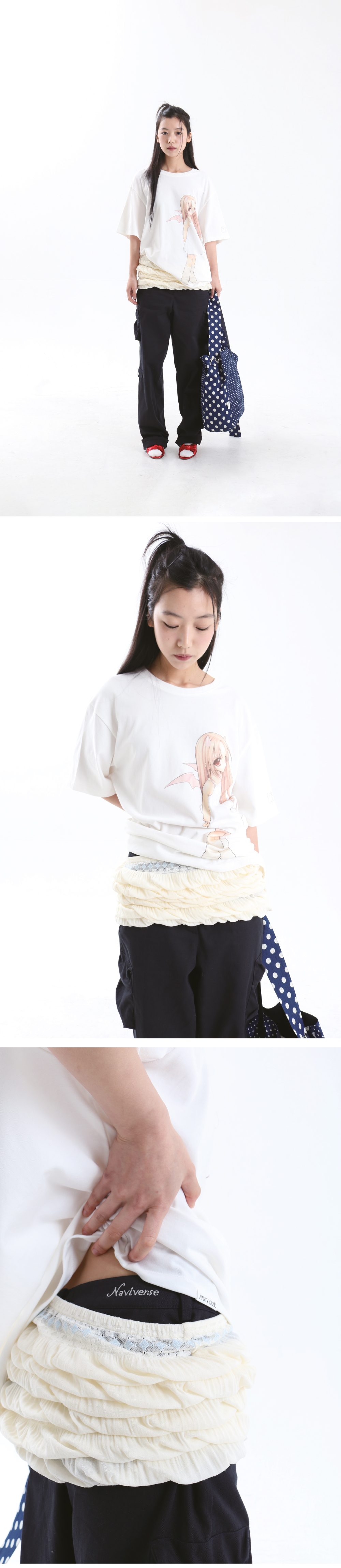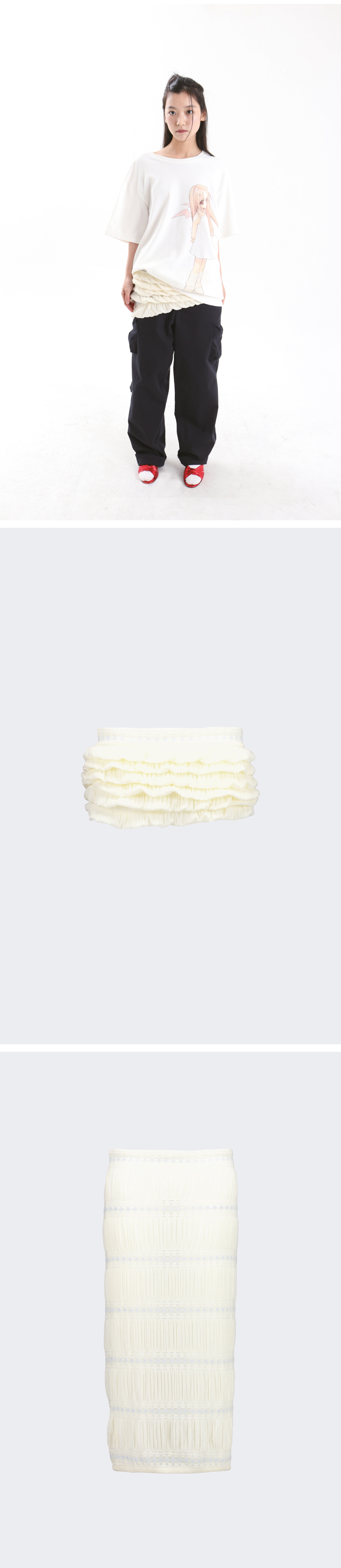 • 자수 패턴 디테일 • 다양하게 연출이 가능한 밴딩 벨트 • 부드럽고 시원한 원단 • 모델 착용 사이즈 FREE