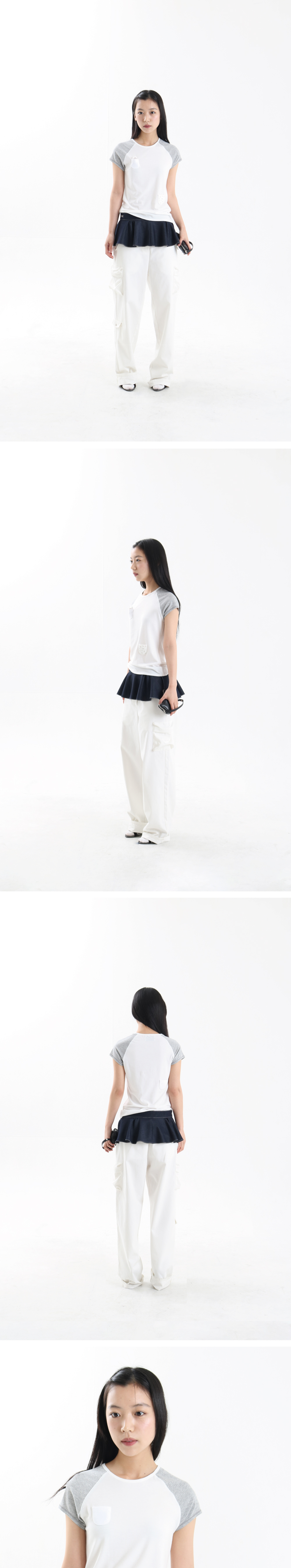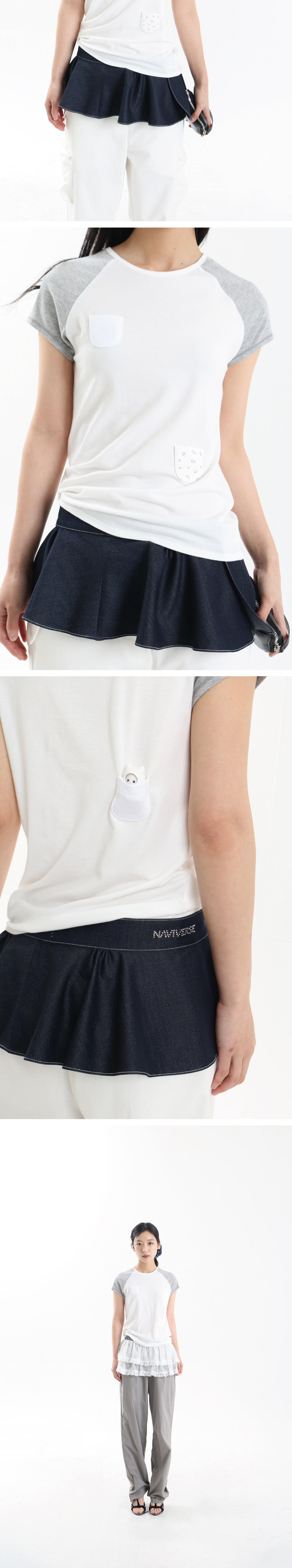 • 미니 포켓 디테일 • 신축성에 강한 모달 원단 • 레글런 소매 • 모델 착용 사이즈 1