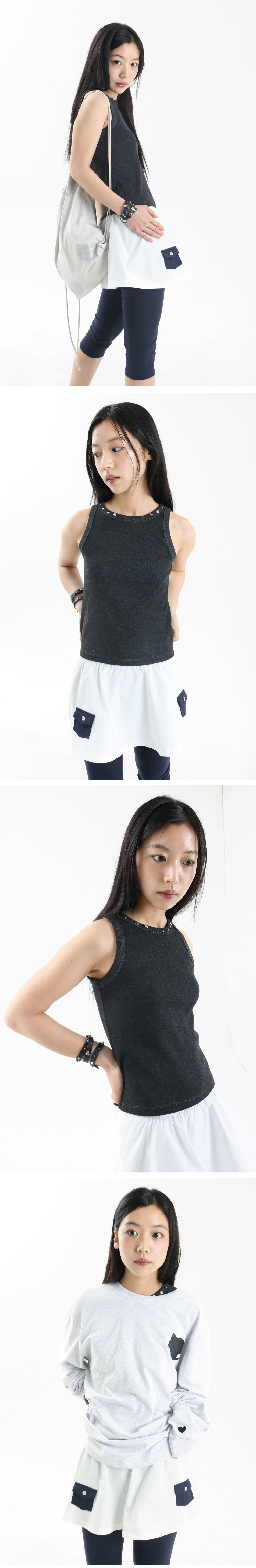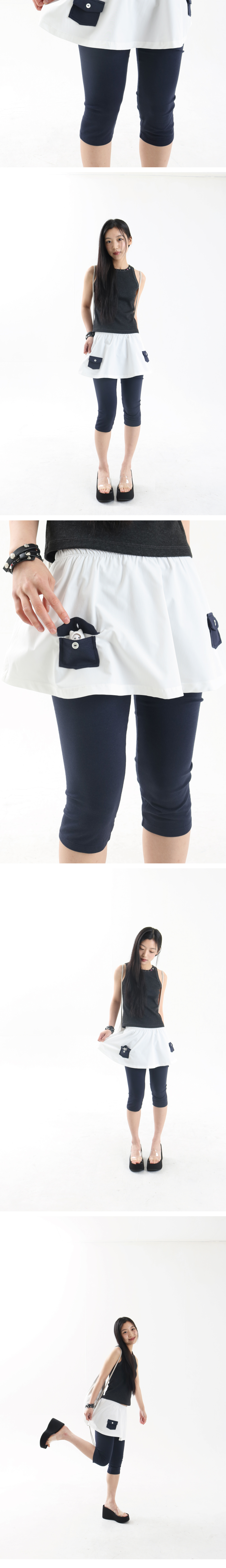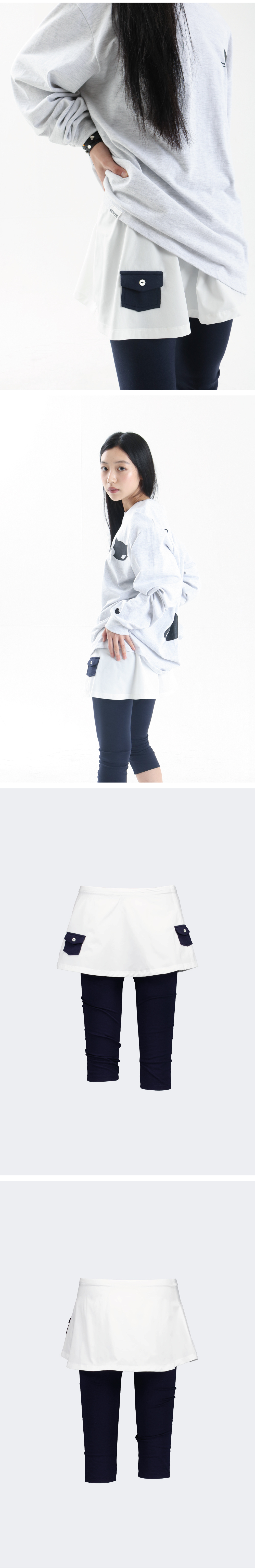 • 레깅스 스커트 디자인 • 배색 원단 • 미니 포켓 주머니 • 신축성이 강한 모달 원단의 레깅스 • 밴딩으로 편안한 착용감 • 모델 착용 사이즈 FREE