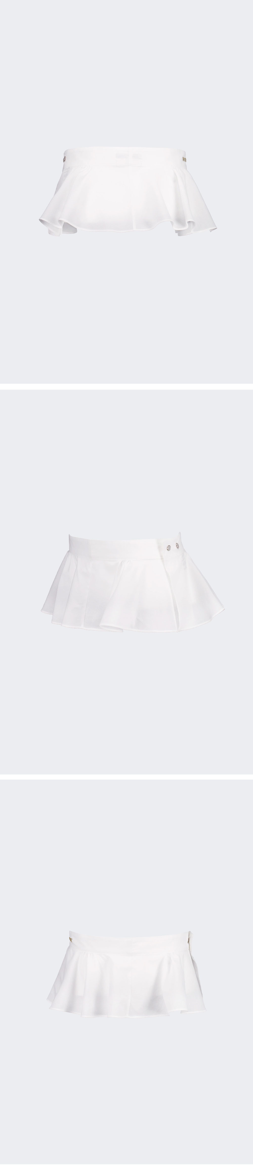 • 나비버스 보석 로고 포인트 • 프릴 스커트 디자인 • 사이즈 조절이 가능한 똑딱이 스냅 마감 • 다양한 레이어드 연출 가능 • 모델 착용 사이즈 2