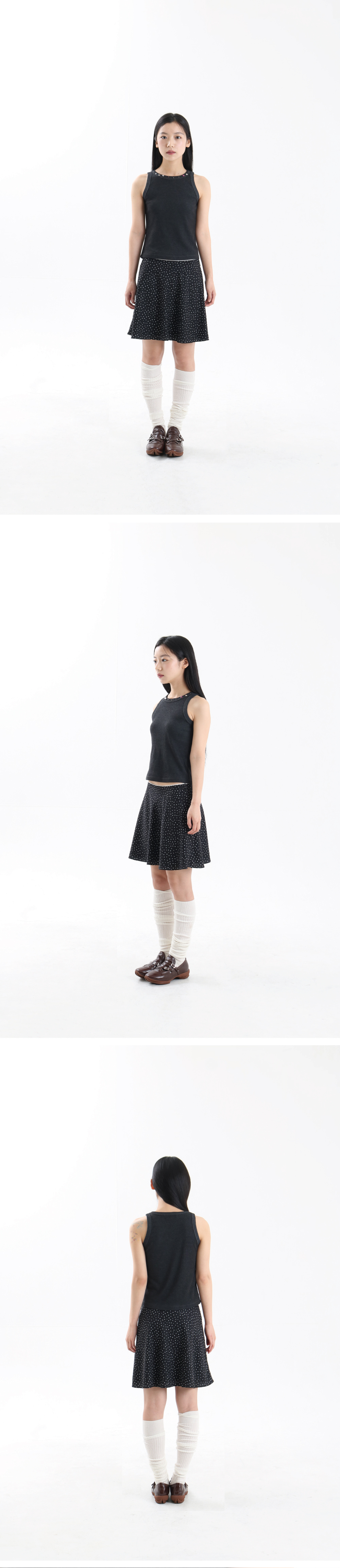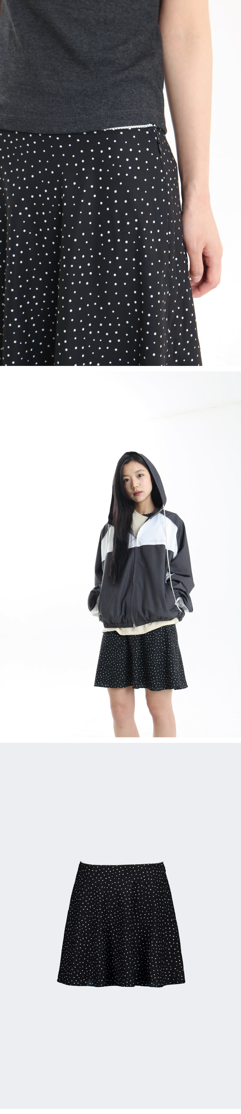 • 도트 원단 • 허리 레이스 포인트 • A라인 실루엣 • 모델 착용 사이즈 FREE