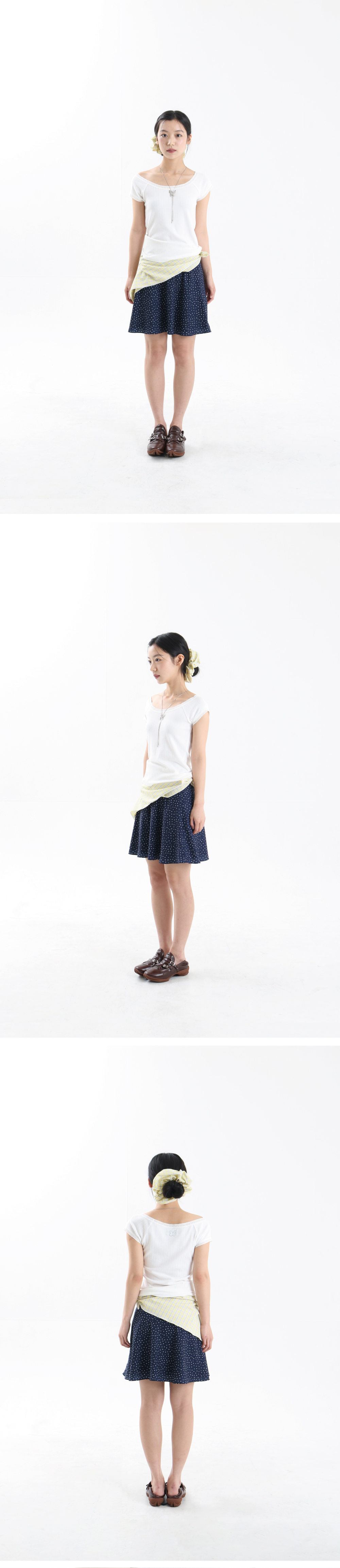 • 도트 원단 • 허리 레이스 포인트 • A라인 실루엣 • 모델 착용 사이즈 FREE