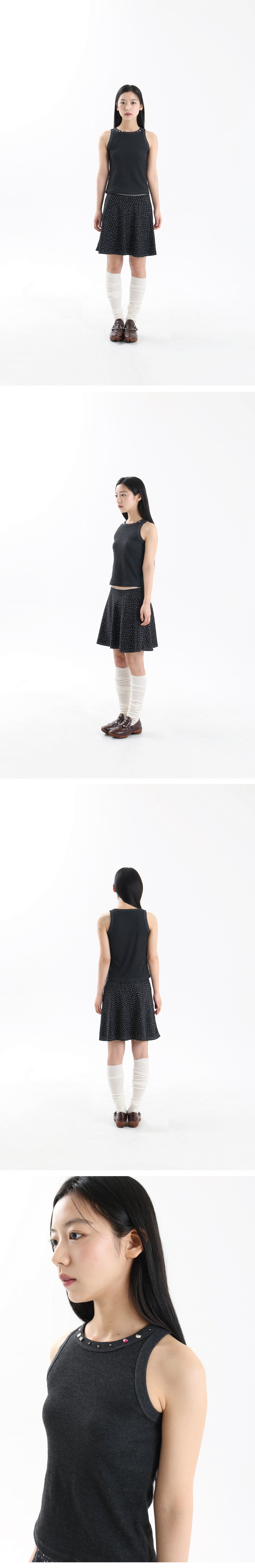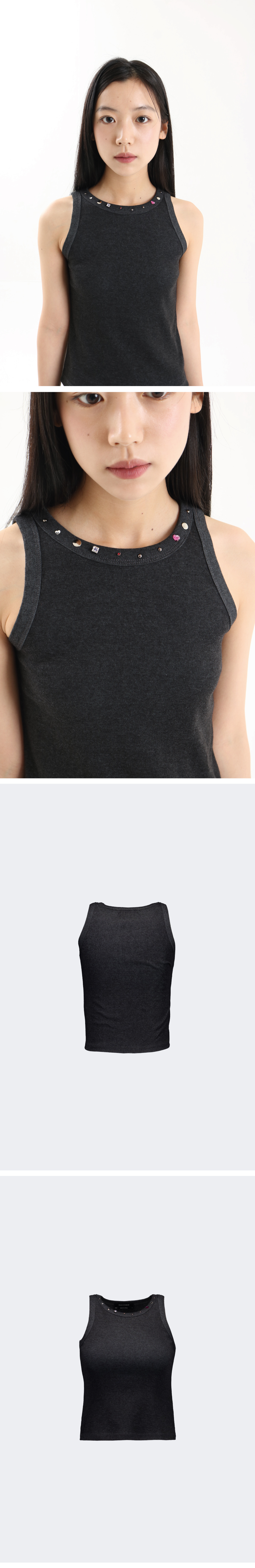 • 스와로브스키 정품 사용 • 네크 부분 핫픽스, 비즈 디테일 • 신축성이 적은 탄탄한 골지 원단 • 모델 착용 사이즈 1