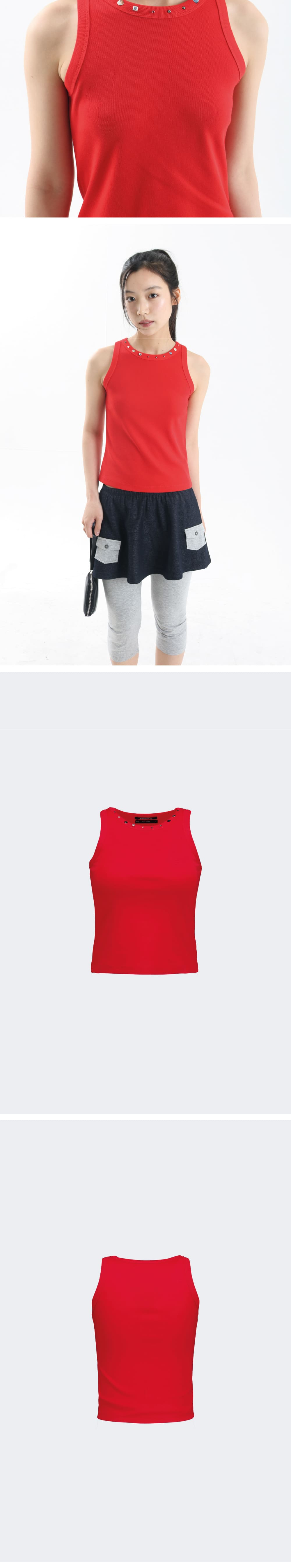 • 스와로브스키 정품 사용 • 네크 부분 핫픽스, 비즈 디테일 • 신축성이 적은 탄탄한 골지 원단 • 모델 착용 사이즈 1