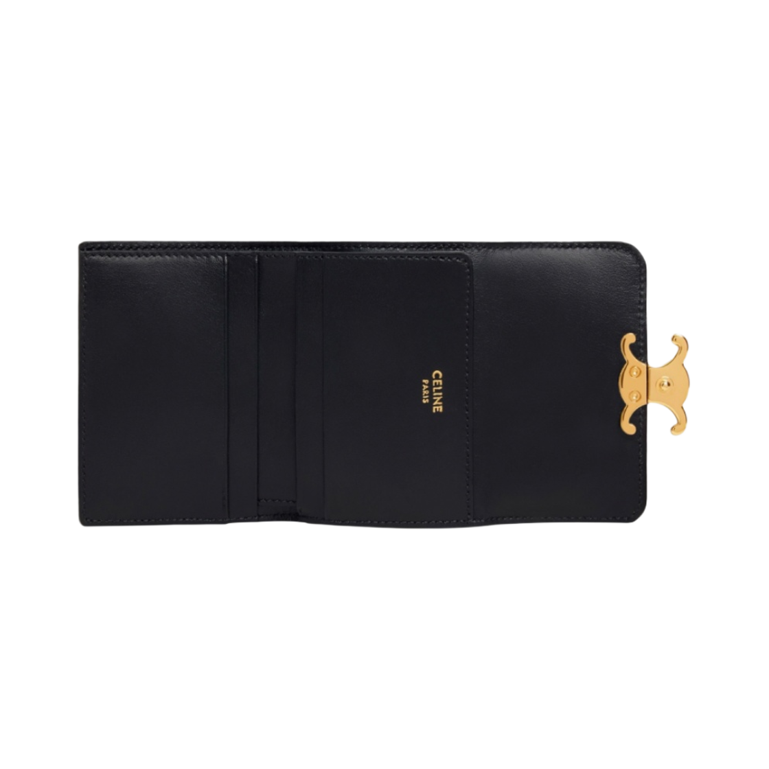 Celine Compact Wallet with Coin Triomphe in Shiny Calfskin Black