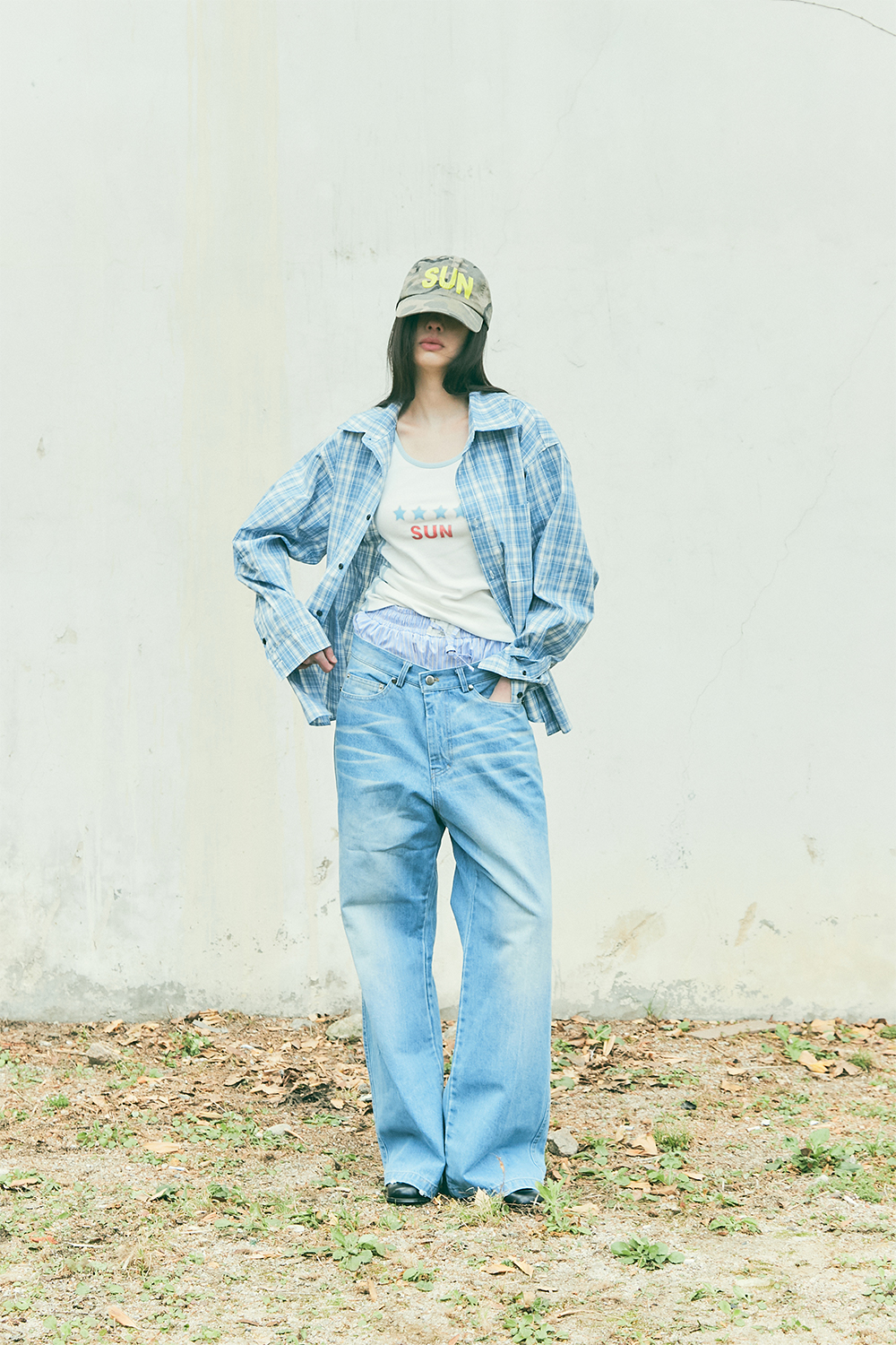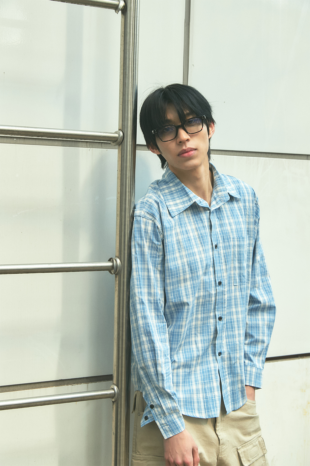 블루 선플라워 포멀 라인 체크 셔츠 라이트 블루