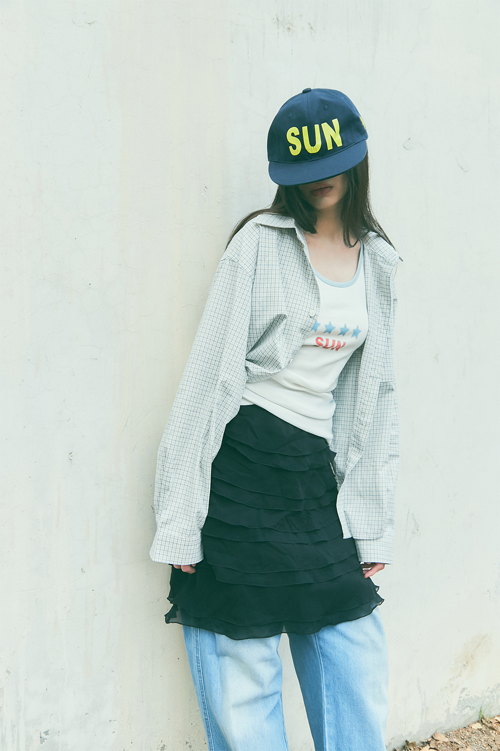 블루 선플라워 포멀 라인 플레인 체크 셔츠