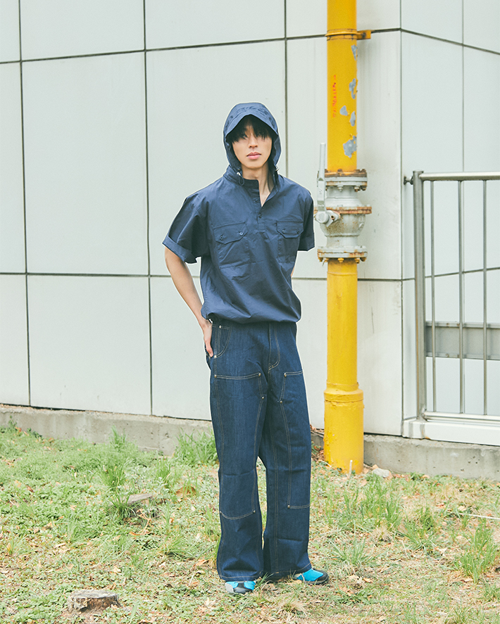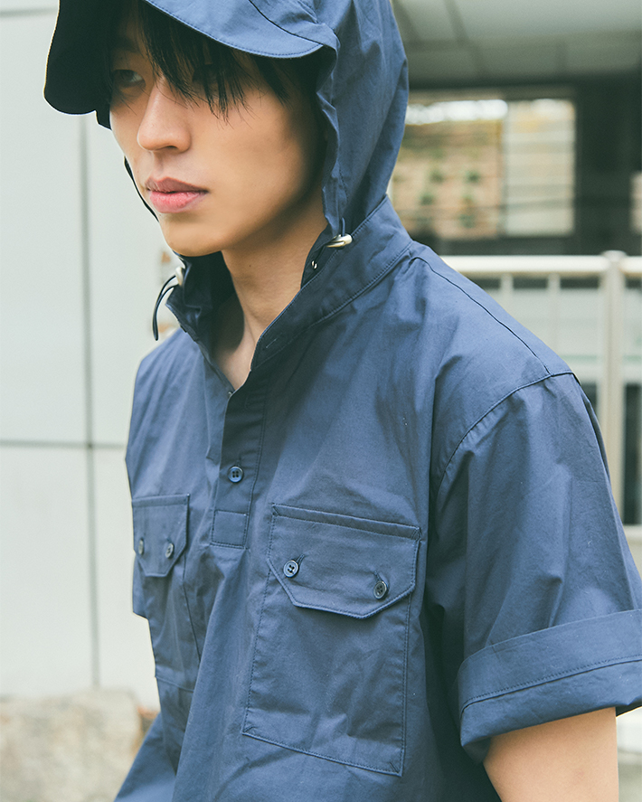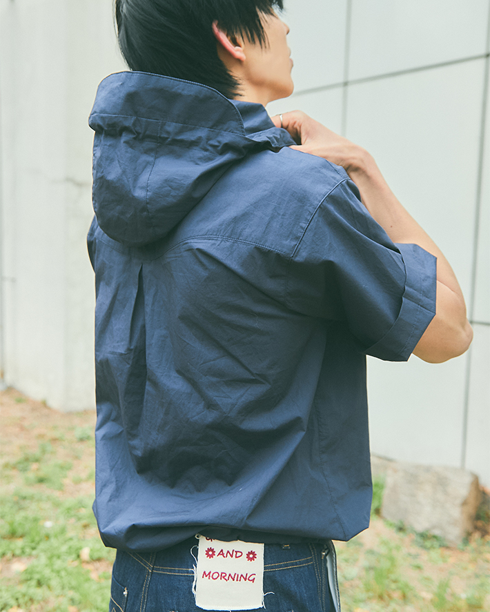 블루 선플라워 플레인 스냅 후드 윈드브레이커 셔츠 네이비