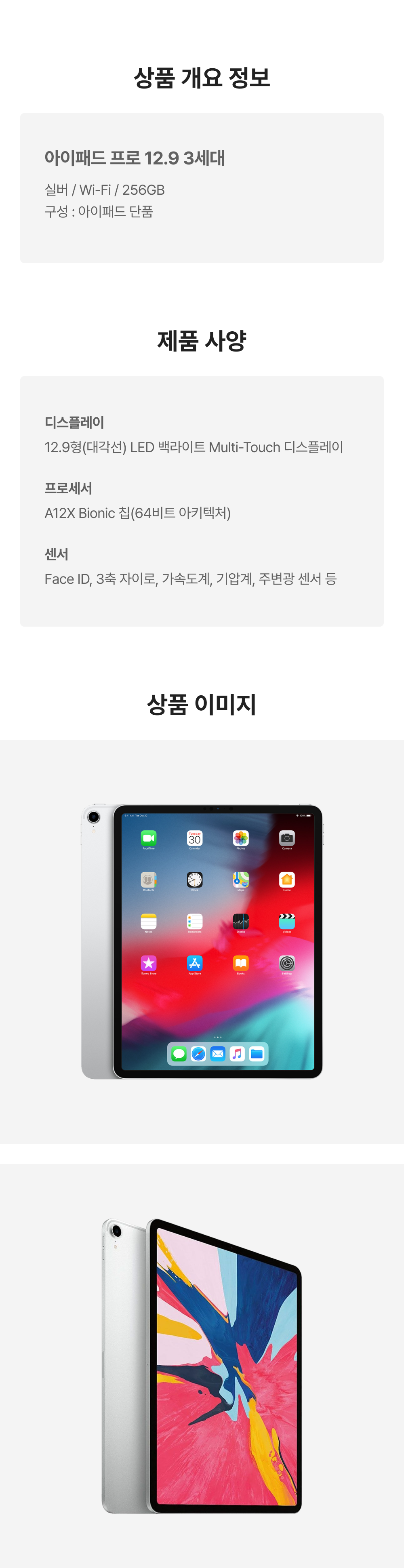 [A등급] 리퍼비시 아이패드 프로 12.9 3세대 wifi A12X Bionic 256기가 실버