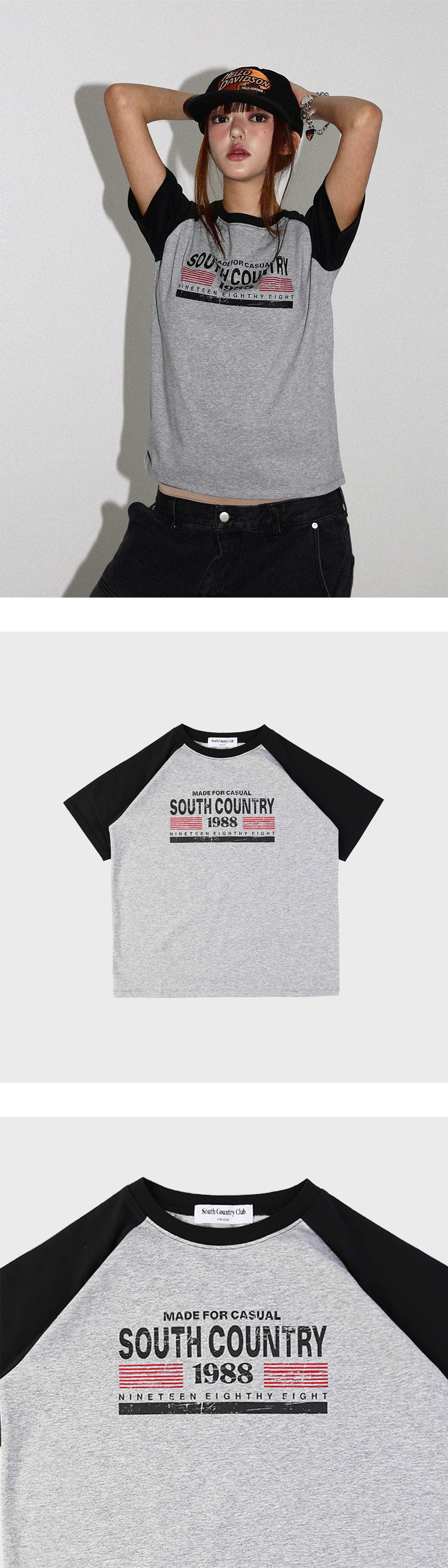 에이펙스디자인 빈티지 크롭 티셔츠 그레이/블랙