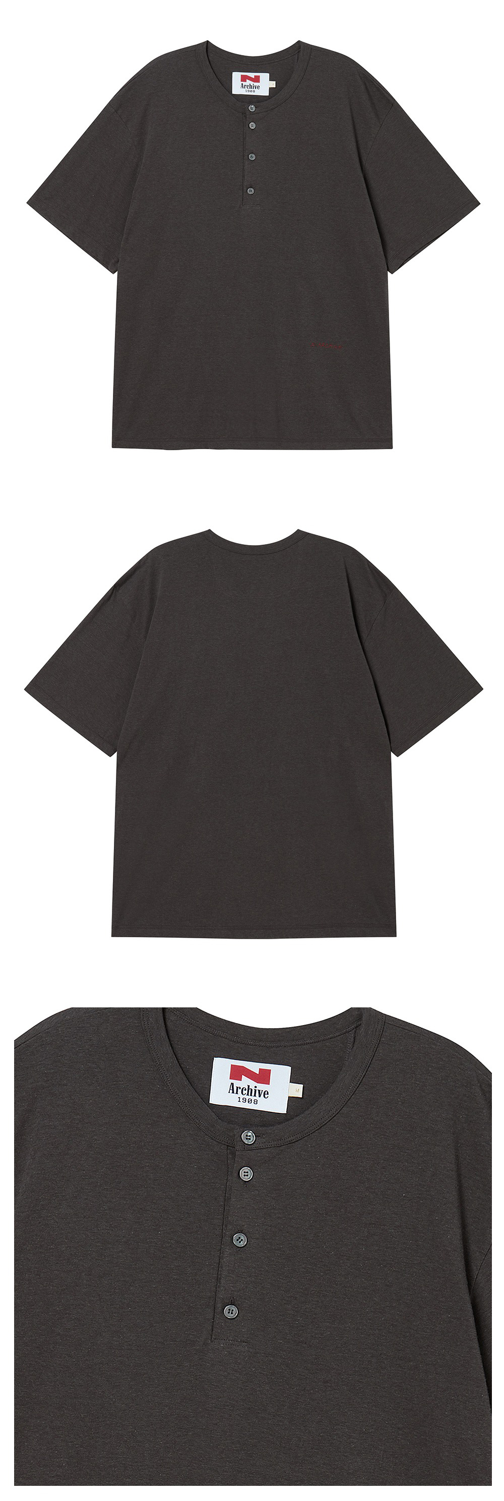 엔 아카이브 린넨 블렌디드 빈티지 가먼트 헨리넥 반팔 티셔츠 차콜 그레이