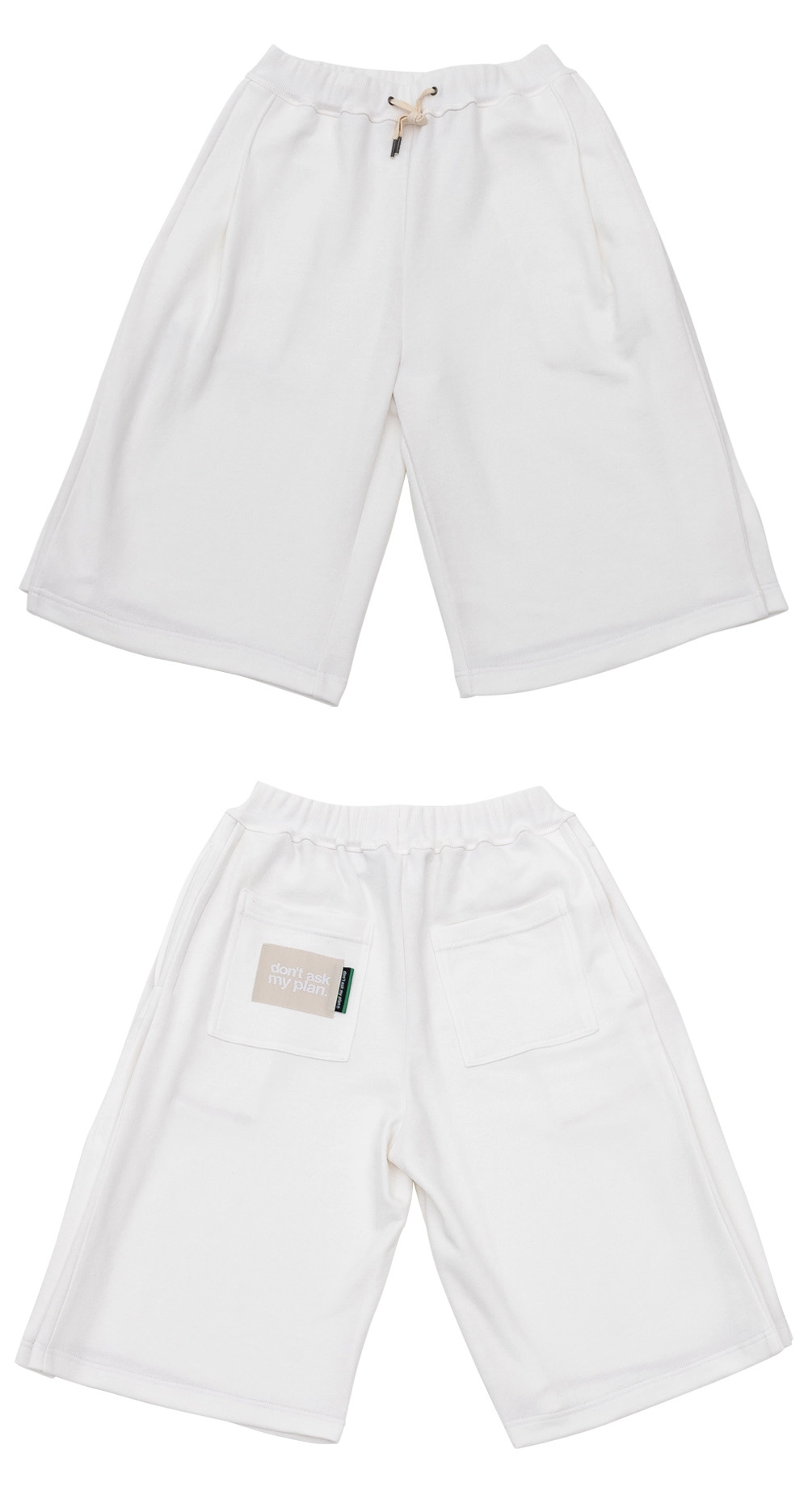 돈애스크마이플랜 버뮤다 와이드 플리츠 스웻 쇼츠 화이트