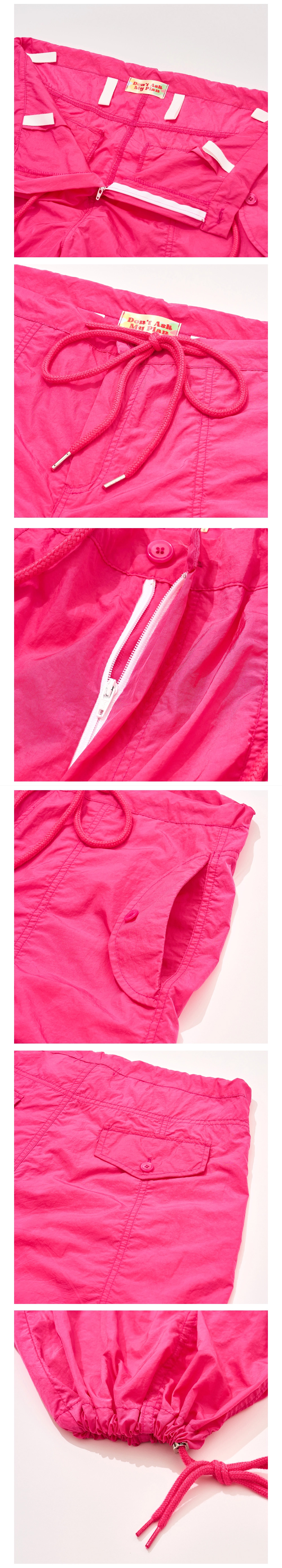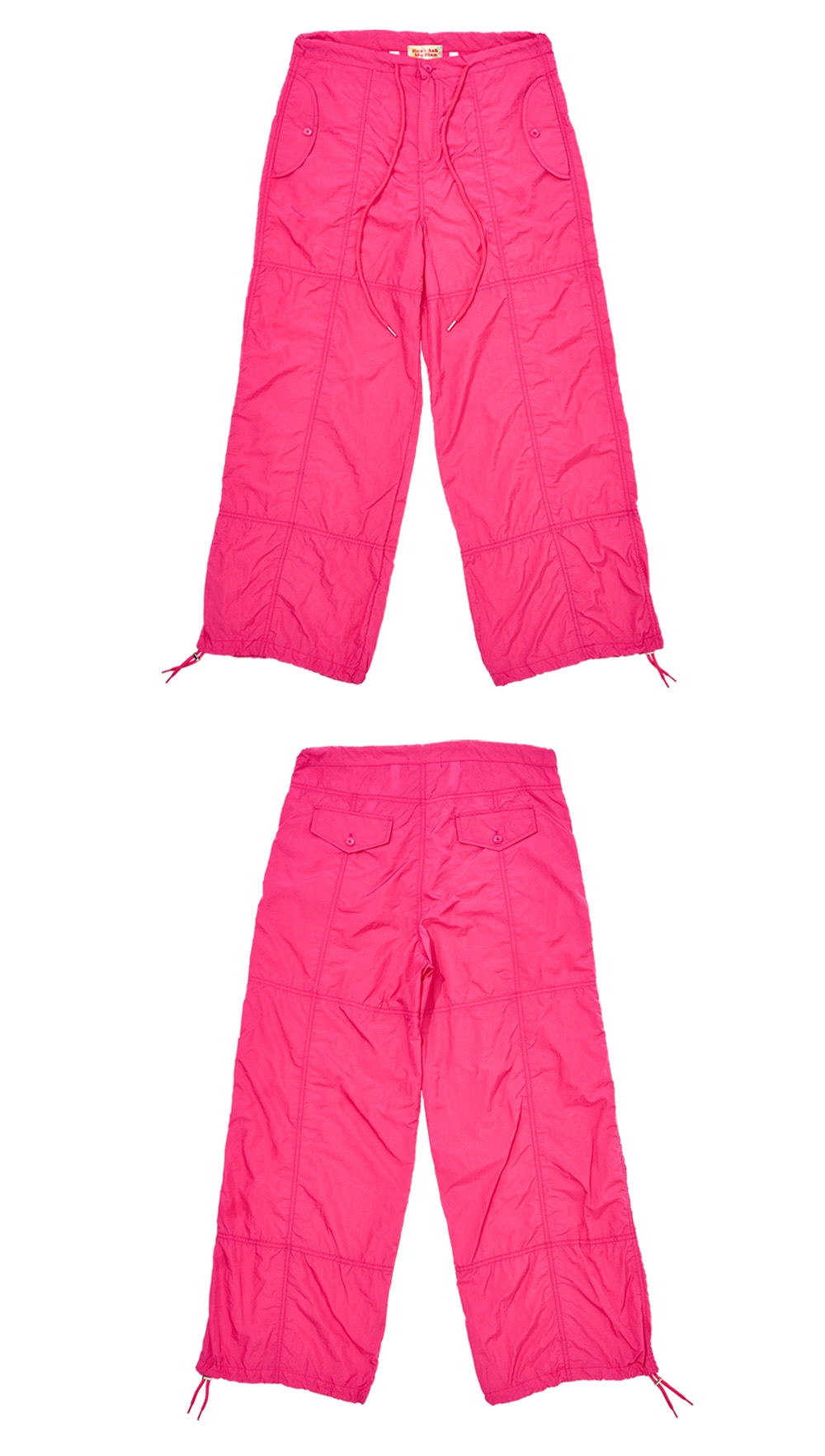 남여공용으로 제작된 파라슈트 팬츠입니다. 와이드 핏으로 제작되었으며, 허리 부분과 밑단에 스트링을 넣어 원하는 핏으로 조절이 가능합니다. 서걱거리고 시원한 나일론 소재로 제작하여 봄, 가을은 물론 한여름까지 스타일링하기 좋은 아이템입니다.