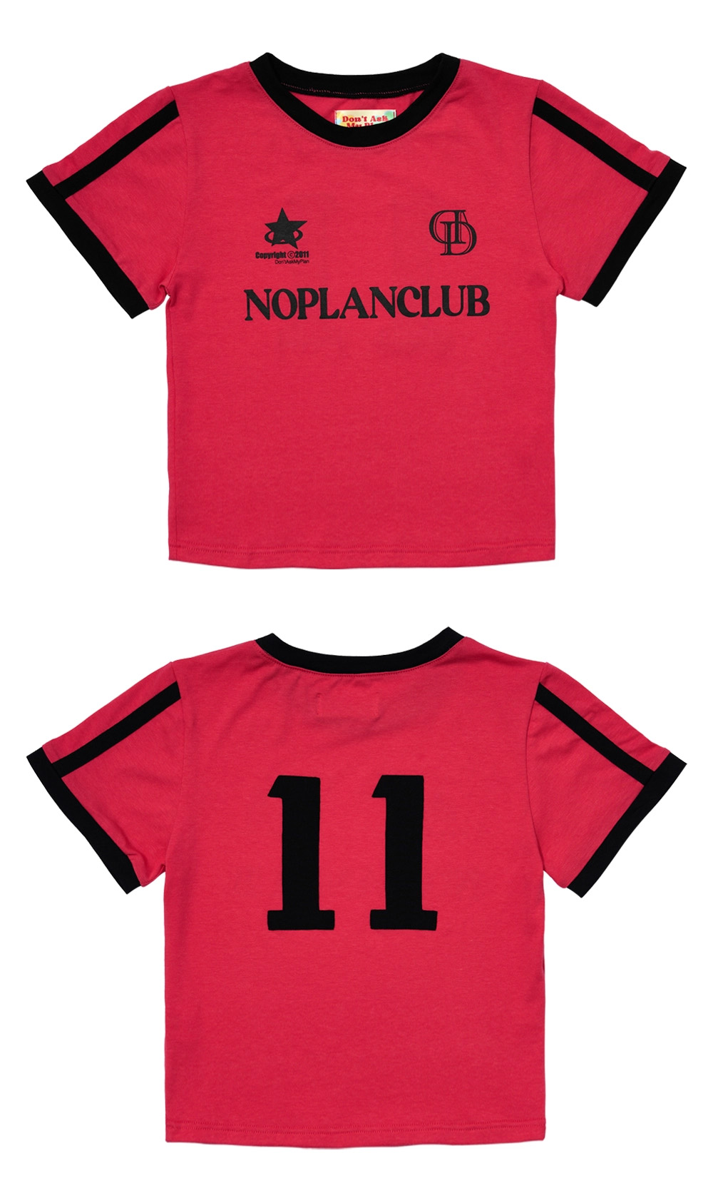 축구 클럽 느낌의 프린팅 디자인이 매력적인 크롭 티셔츠입니다.