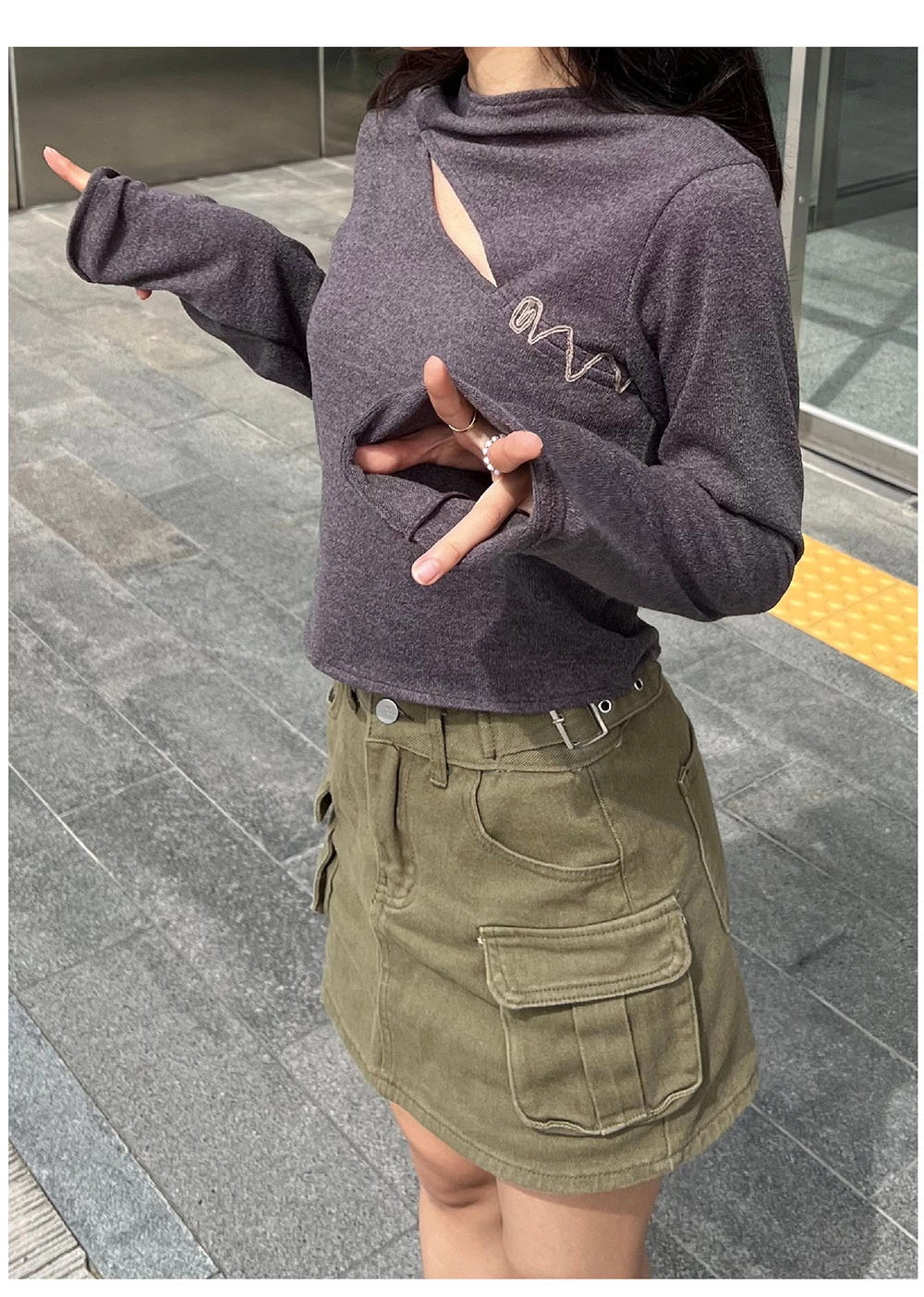 컷아웃과 배색 스티치가 포인트인 제품입니다.