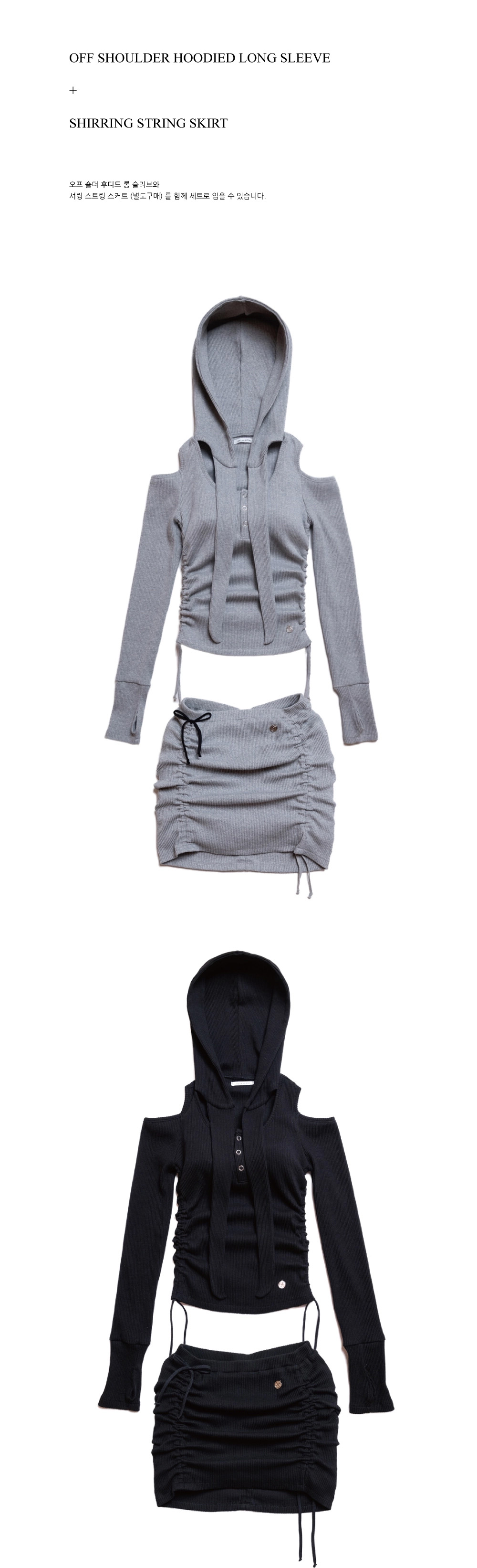 돈애스크마이플랜 오프 숄더 후드 롱 슬리브 블랙