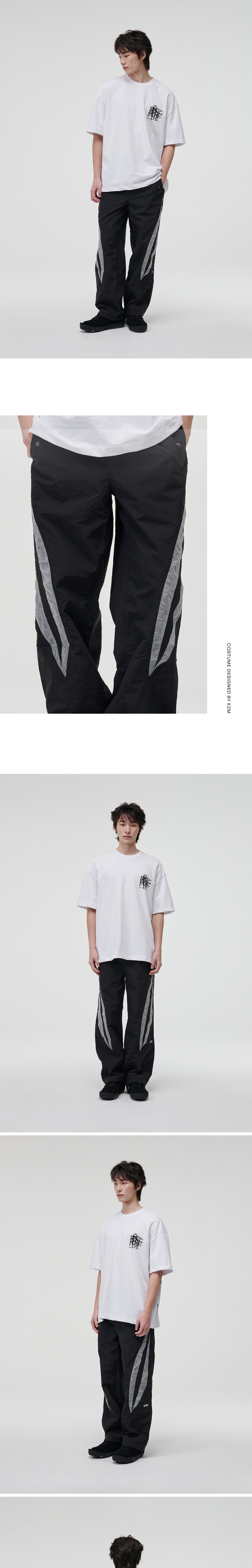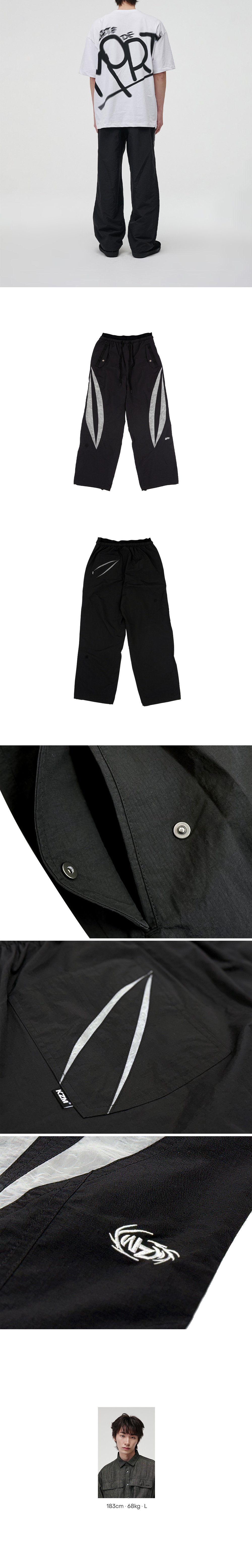 DETAILS ● 고밀도 나일론 립스탑 원단을 사용한 나일론 팬츠입니다. ● 울밴드를 사용하여 착용 시 편안한 착용감을 선사합니다. ● 전체적인 전면 라인과, 후면 포켓에 배색 포인트를 준 디자인입니다. ● 밑단 스트링으로 다양한 스타일링이 가능합니다. ● 자수 아트웍으로 포인트를 주었습니다. SIZE (단위: cm) ● L : 총장 110cm, 허리단면 38.5cm, 엉덩이단면 60cm, 밑단단면 27cm ● XL : 총장 116cm, 허리단면 41.5cm, 엉덩이단면 63cm, 밑단단면 28cm ※ 측정 방법에 따라 ±1~2cm의 오차가 발생할 수 있습니다. ※ 색상은 모니터 해상도 및 사양에 따라 실제 제품과 다소 차이가 있을 수 있습니다.