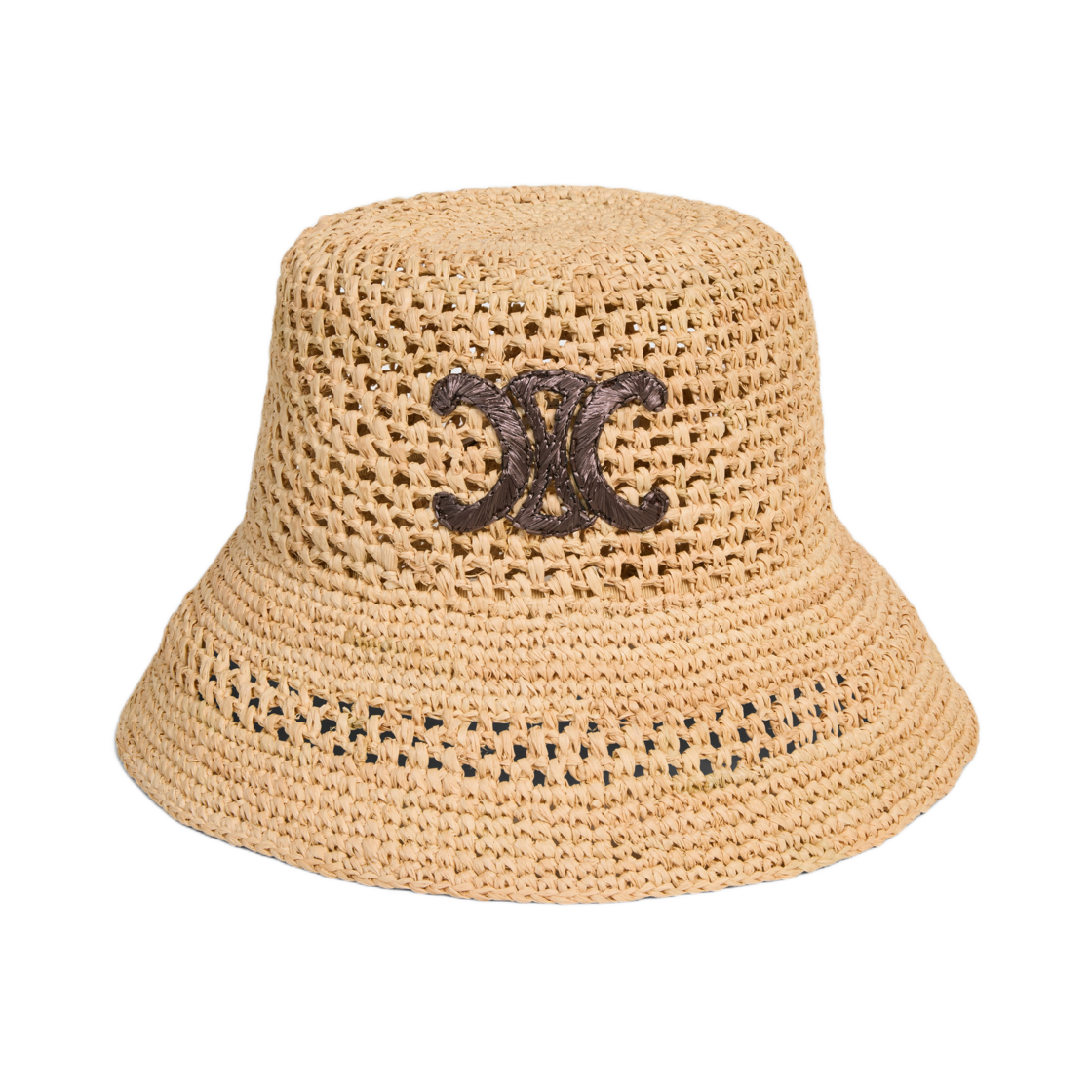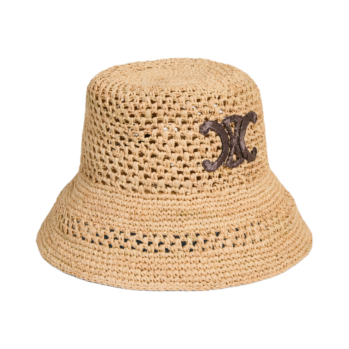 (W) Celine Triomphe Bucket Hat in Raffia Natural