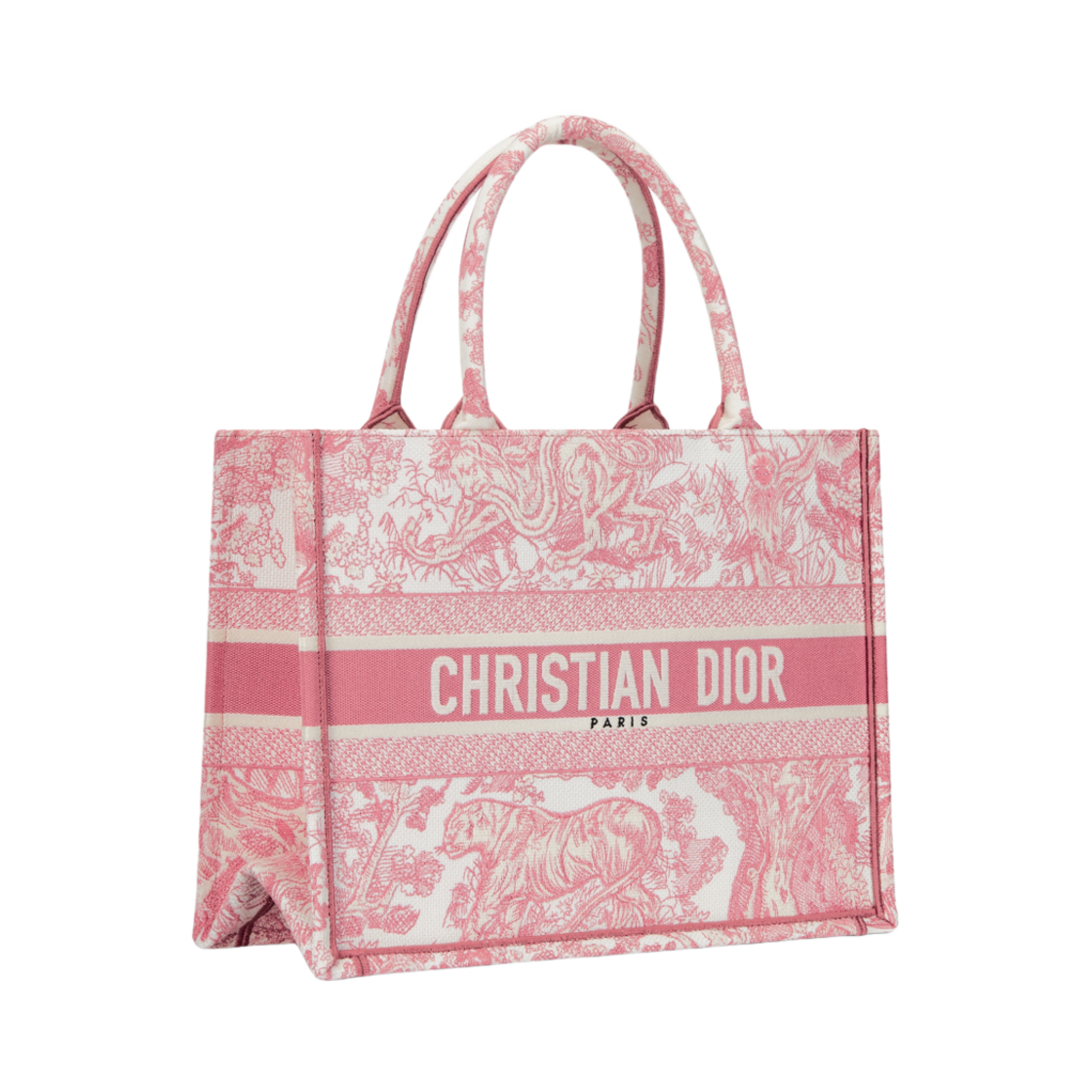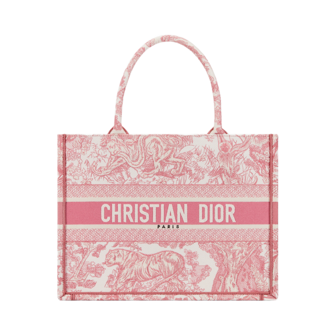 Dior Medium Dior Book Tote Toile De Jouy Sauvage Embroidery White Yarrow Pink