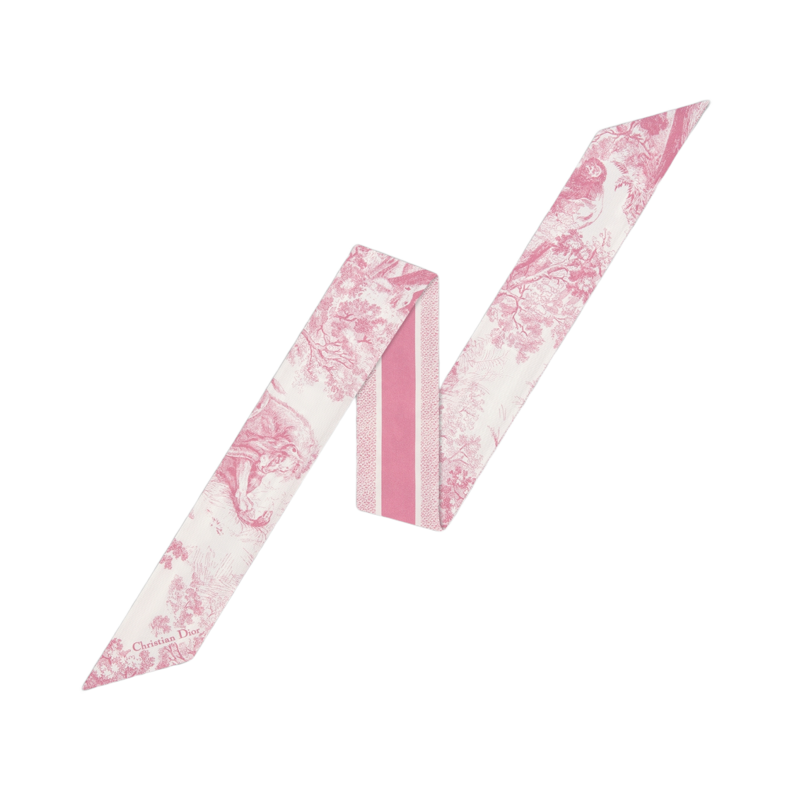 (W) Dior Dioriviera Toile De Jouy Sauvage Mitzah Scarf Silk Twill White Candy Pink